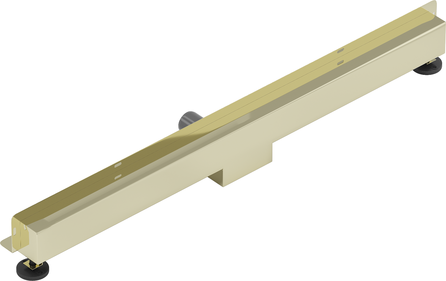 De afvoer is uitgerust met verstelbare pootjes, die het mogelijk maken om de juiste hoogte van de afvoer aan te passen en waterpas te stellen op een ongelijke ondergrond. Op deze manier is de afvoer nog beter aangepast aan de omstandigheden van de betreffende badkamer.
