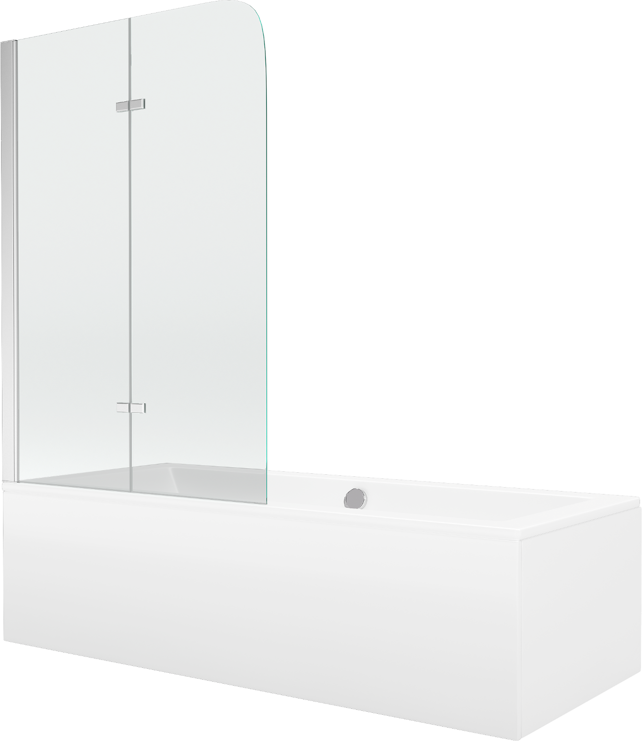 Scherm gemaakt van twee vleugels met de mogelijkheid om het op te vouwen. Deze oplossing bespaart meer ruimte in de badkamer en maakt het gemakkelijk om de overgebleven ruimte te gebruiken wanneer we de badzone niet gebruiken.