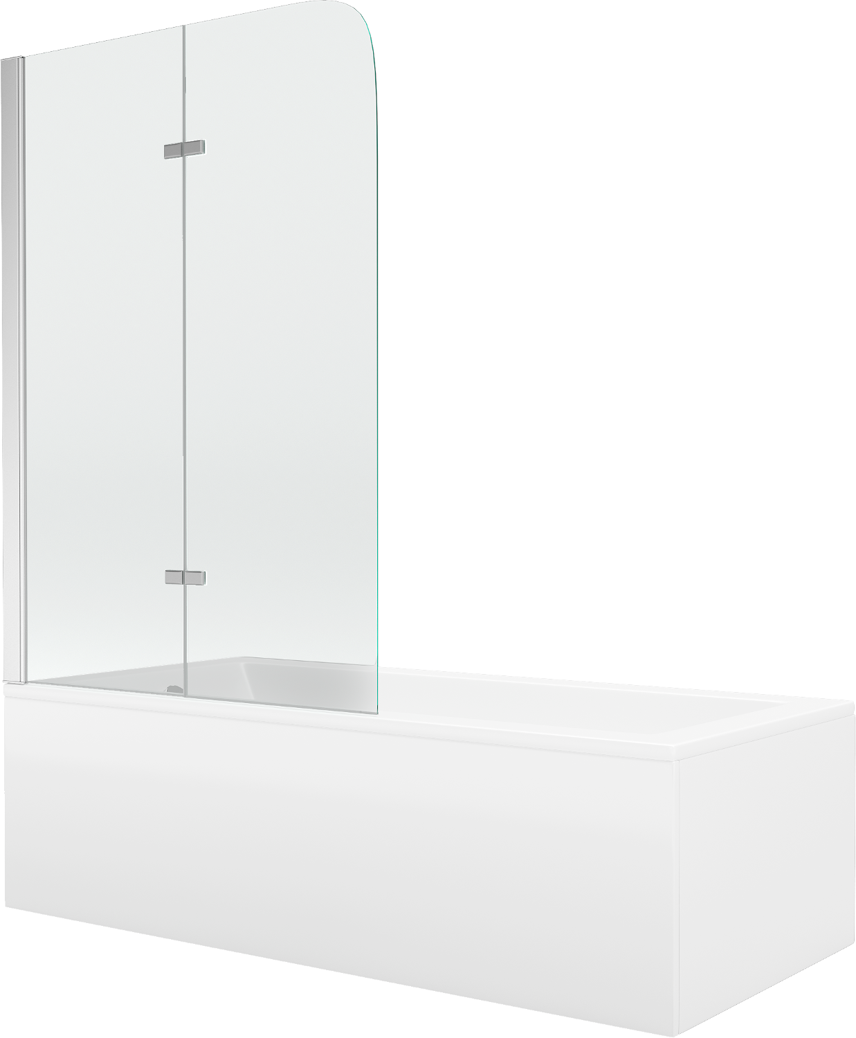 Mexen Cubik rechthoekig bad 150 x 70 cm met paneel en 2-delige scherm 80 cm, transparant, chroom - 550315070X9008020100