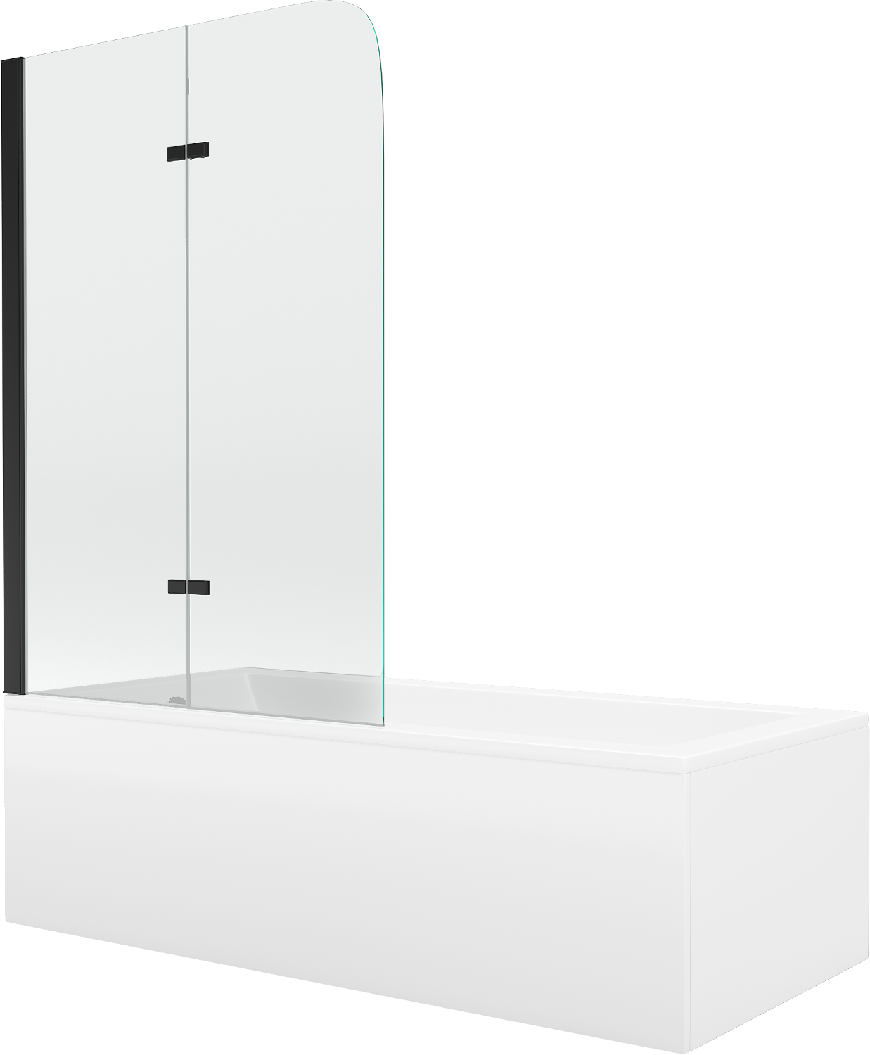 Mexen Cubik rechthoekig bad 150 x 70 cm met ombouw en 2-delige scherm 100 cm, transparant, zwart - 550315070X9010027000