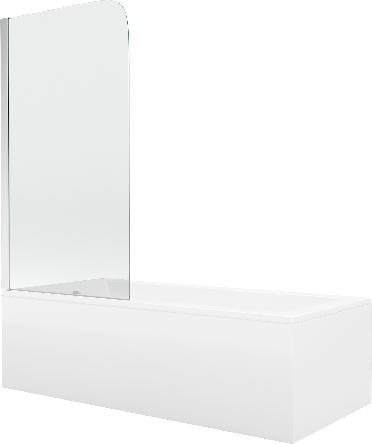 Mexen Cubik rechthoekig bad 160 x 70 cm met omkleding en 1-vleugelig scherm 75 cm, transparant, chroom - 550316070X9007510100