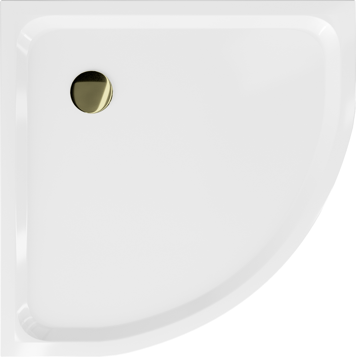 Flat kwartronde slanke douchebak met afmetingen van 90 x 90 cm is de perfecte oplossing voor een moderne badkamer. Gemaakt van hoogwaardig sanitair acryl, biedt het een elegante uitstraling en duurzaamheid. De witte kleur en de gouden afwerking van de sifon voegen een luxe toets toe. Met een diepte van slechts 5 cm en een aansluitdiameter van 90 mm biedt het gebruiksgemak. De set bevat een sifon die van boven gereinigd kan worden, wat onderhoud vergemakkelijkt. Flat is de perfecte harmonie van stijl en functionaliteit.