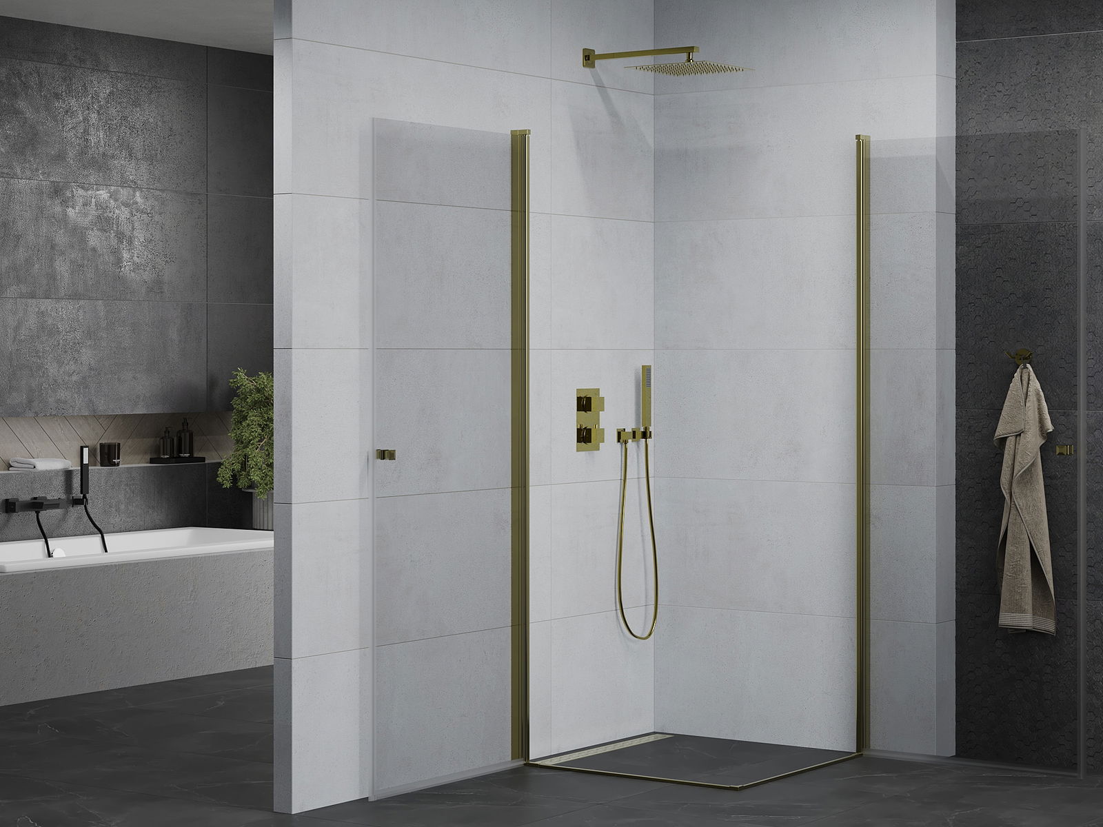 Handige en comfortabele greep is gemaakt van duurzaam en weerbestendig metaal. De modieuze vorm in combinatie met een afwerking die past bij de kleur van de profielen geeft het geheel een moderne en stijlvolle uitstraling, wat de esthetiek van elke badkamer benadrukt.