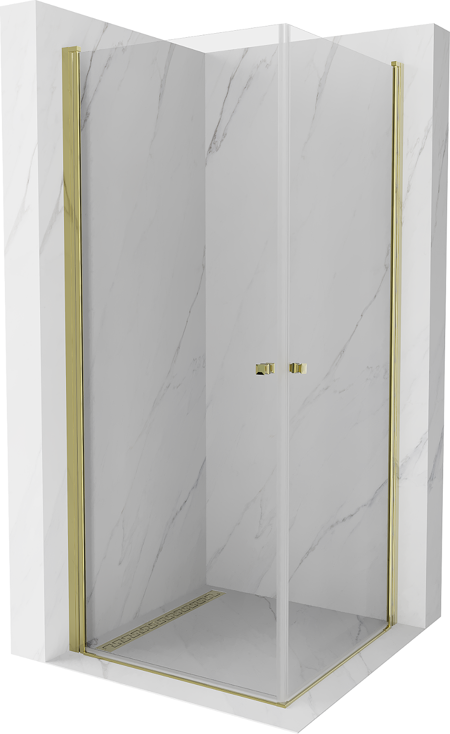 Mexen Pretoria Duo scharnierende douchecabine 70 x 70 cm, transparant, goud - 852-070-070-50-00-02