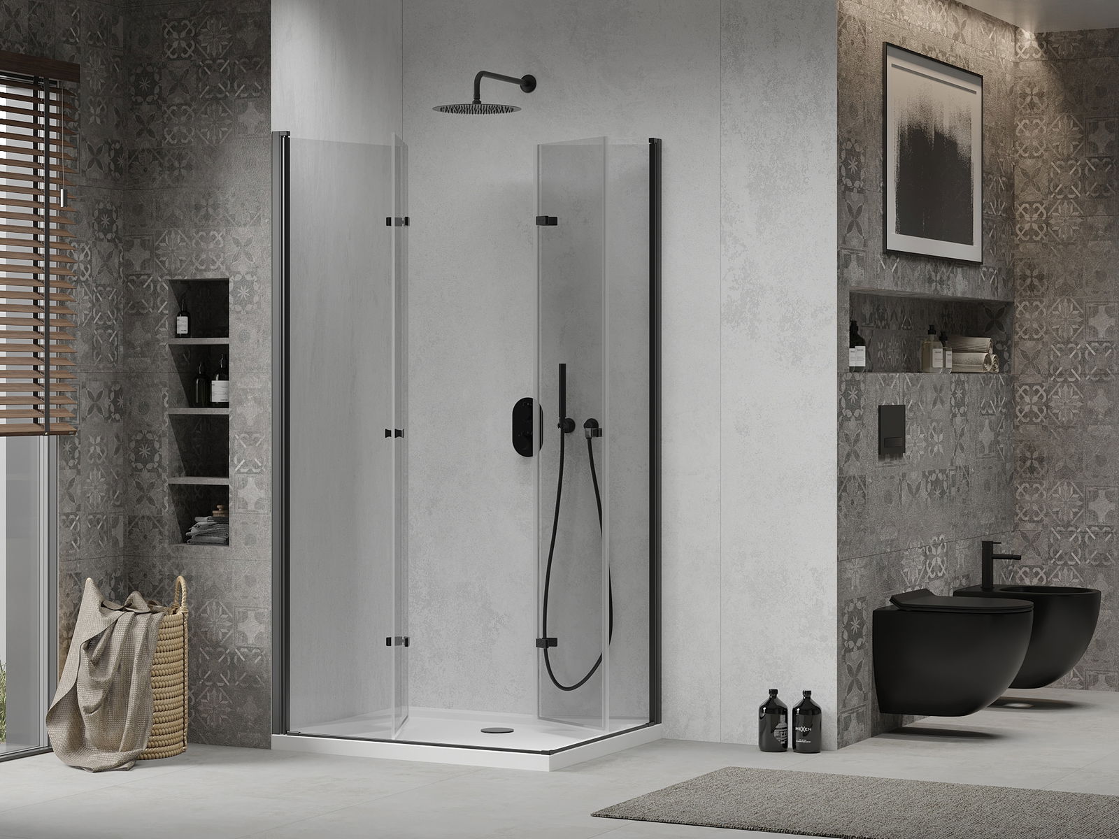 Mexen Rio vierkante douchecabine 90 x 90 cm, transparant, zwart - 860-090-090-70-00