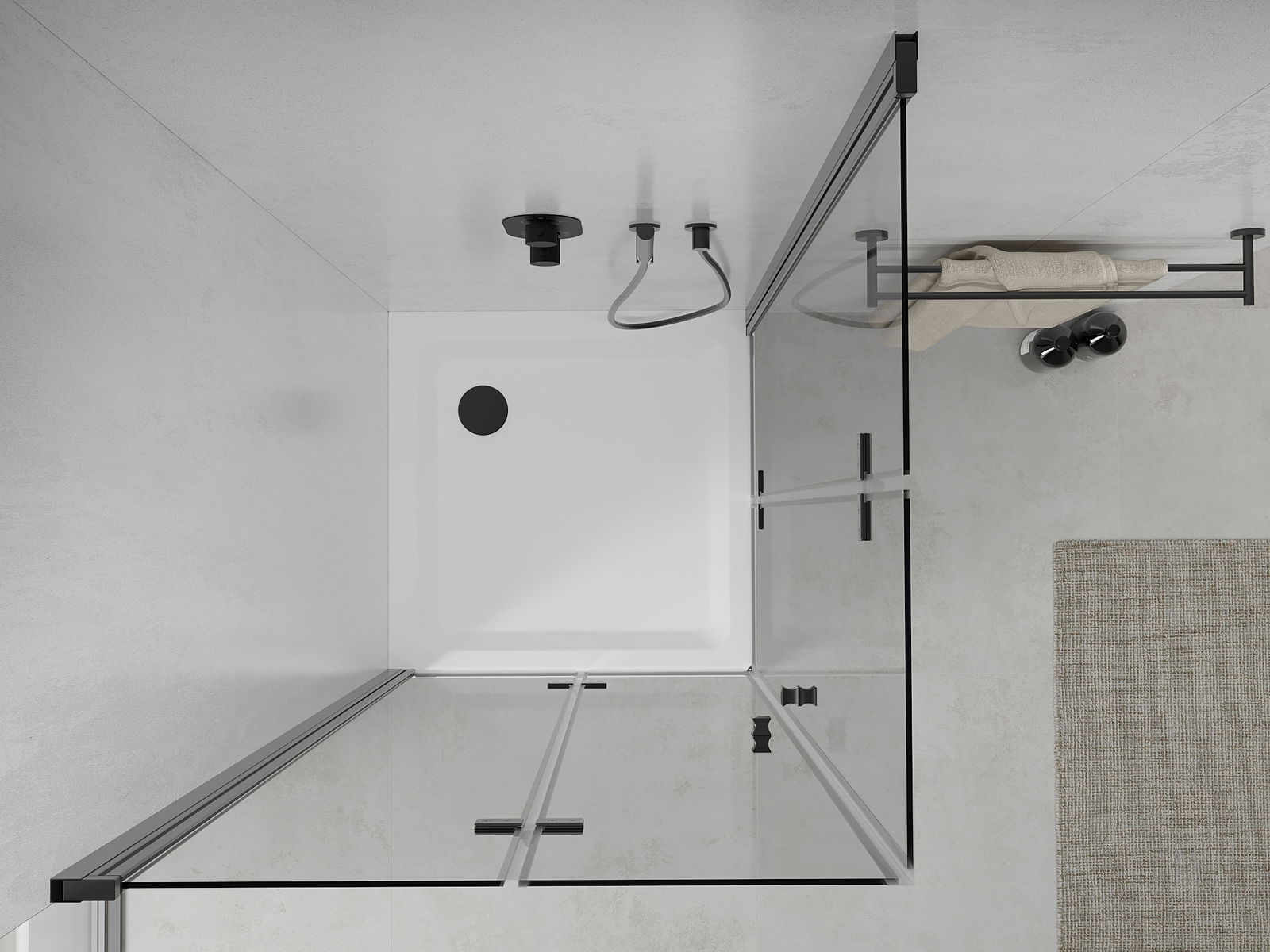 Handige en comfortabele greep is gemaakt van duurzaam en weerbestendig metaal. De modieuze vorm in combinatie met een afwerking die past bij de kleur van de profielen geeft het geheel een moderne en stijlvolle uitstraling, wat de esthetiek van elke badkamer benadrukt.