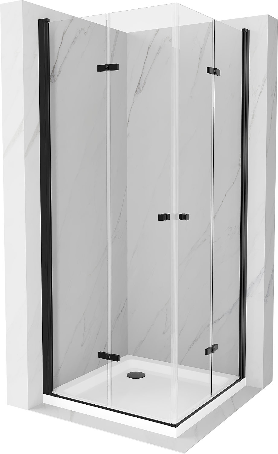 Mexen Lima Duo opvouwbare douchecabine 90 x 90 cm, transparant, zwart + Flat douchebak - 856-090-090-70-02-4010B
