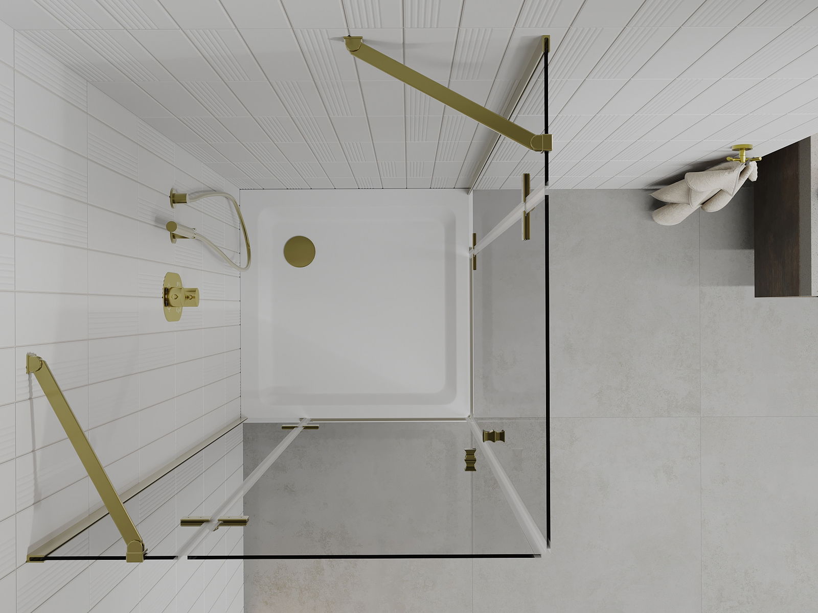 Mexen Roma Duo scharnierende douchecabine 100 x 100 cm, transparant, goud + Flat douchebak - 854-100-100-50-02-4010G