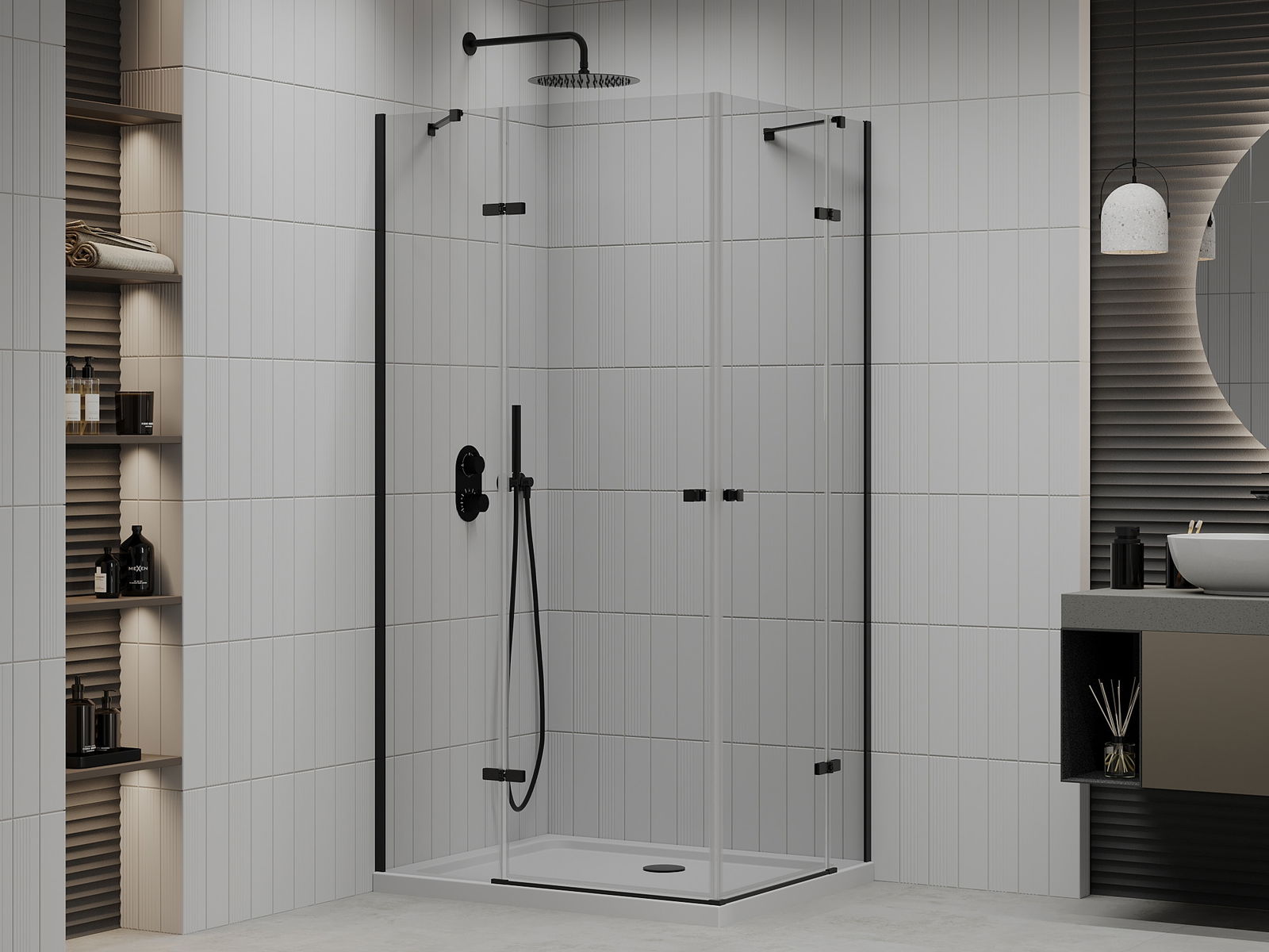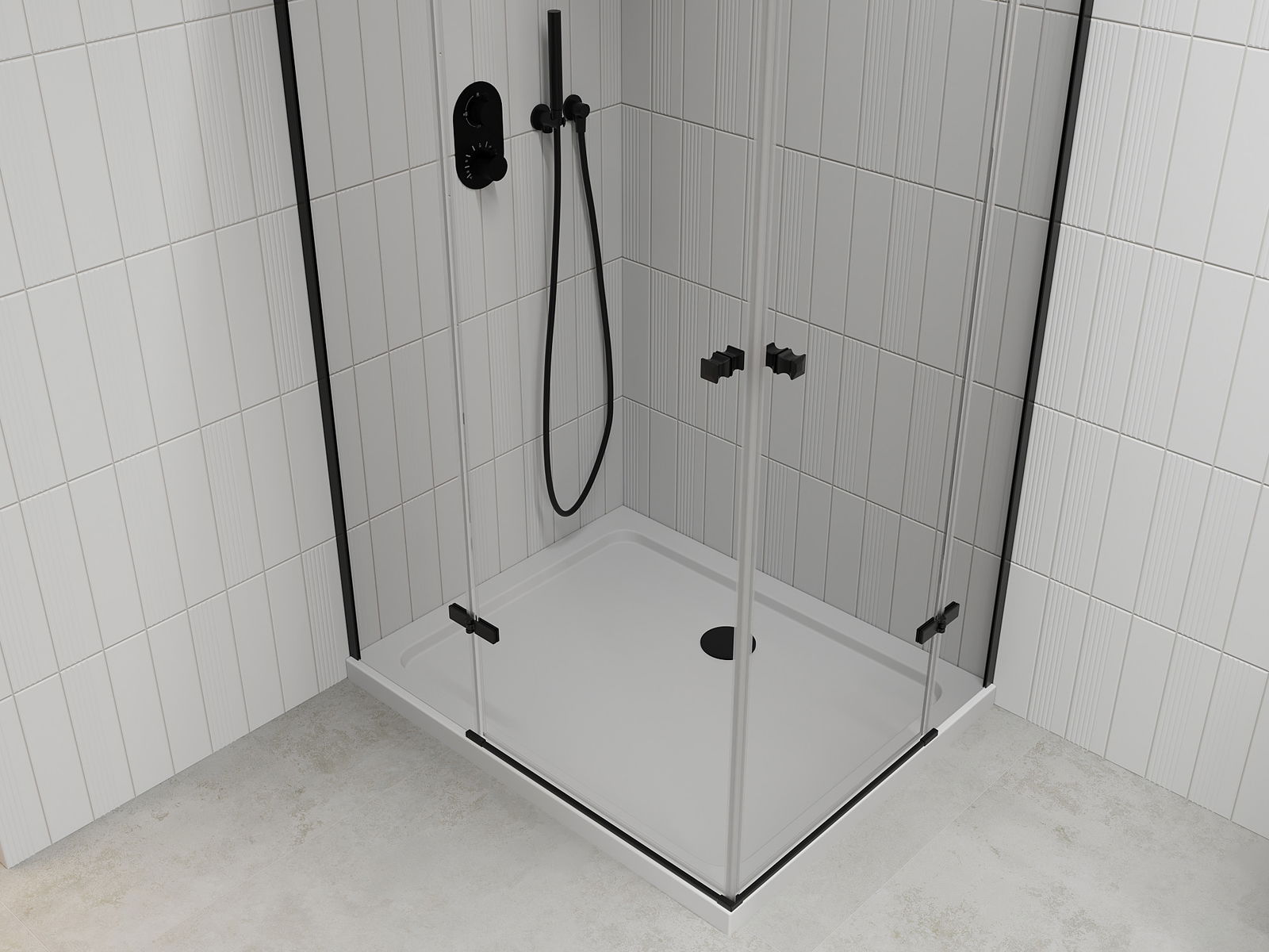 Mexen Roma Duo draaideur douchecabine 90 x 80 cm, transparant, zwart + Flat douchebak - 854-090-080-70-02-4010B