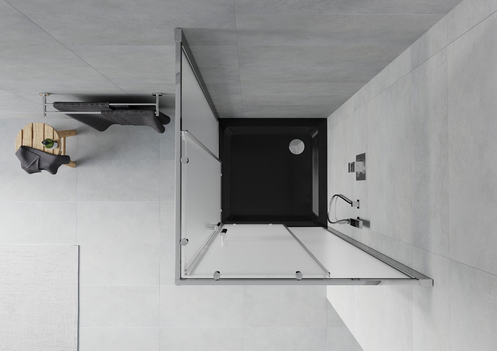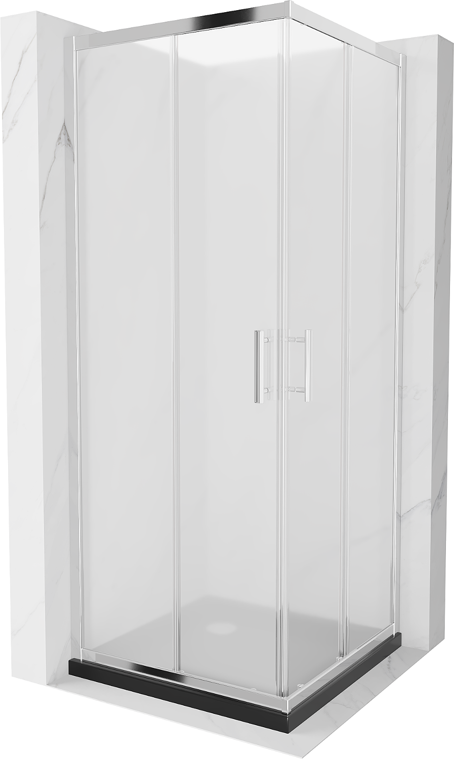 Mexen Rio vierkante douchecabine 80 x 80 cm, matglas, chroom + Flat douchebak, zwart - 860-080-080-01-30-4070