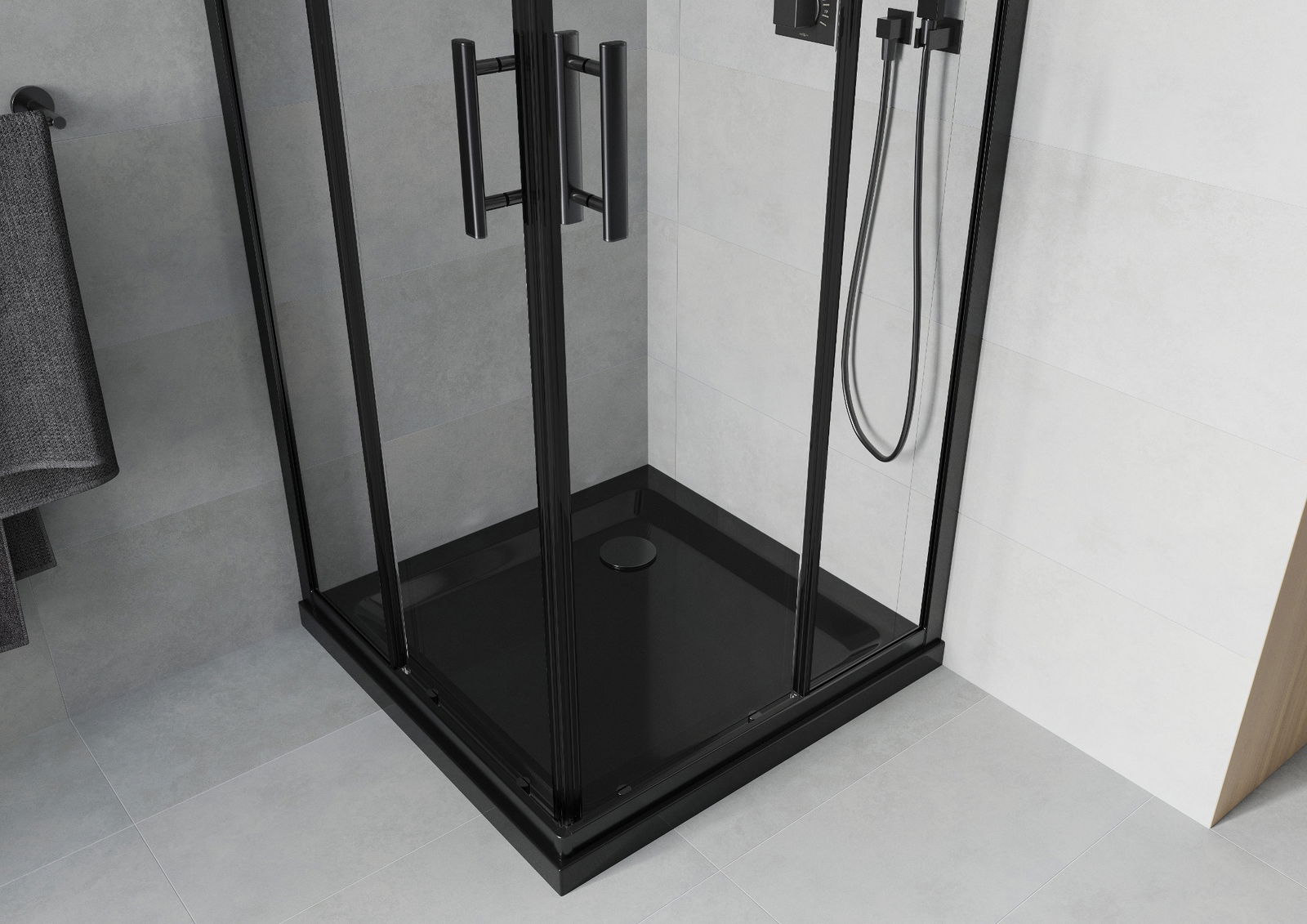 De handige en comfortabele handgreep is gemaakt van duurzaam en stevig metaal. De modieuze vorm, gecombineerd met een afwerking die qua kleur aansluit bij de profielen, geeft het geheel een moderne en stijlvolle uitstraling en versterkt de esthetiek van elke badkamer.
