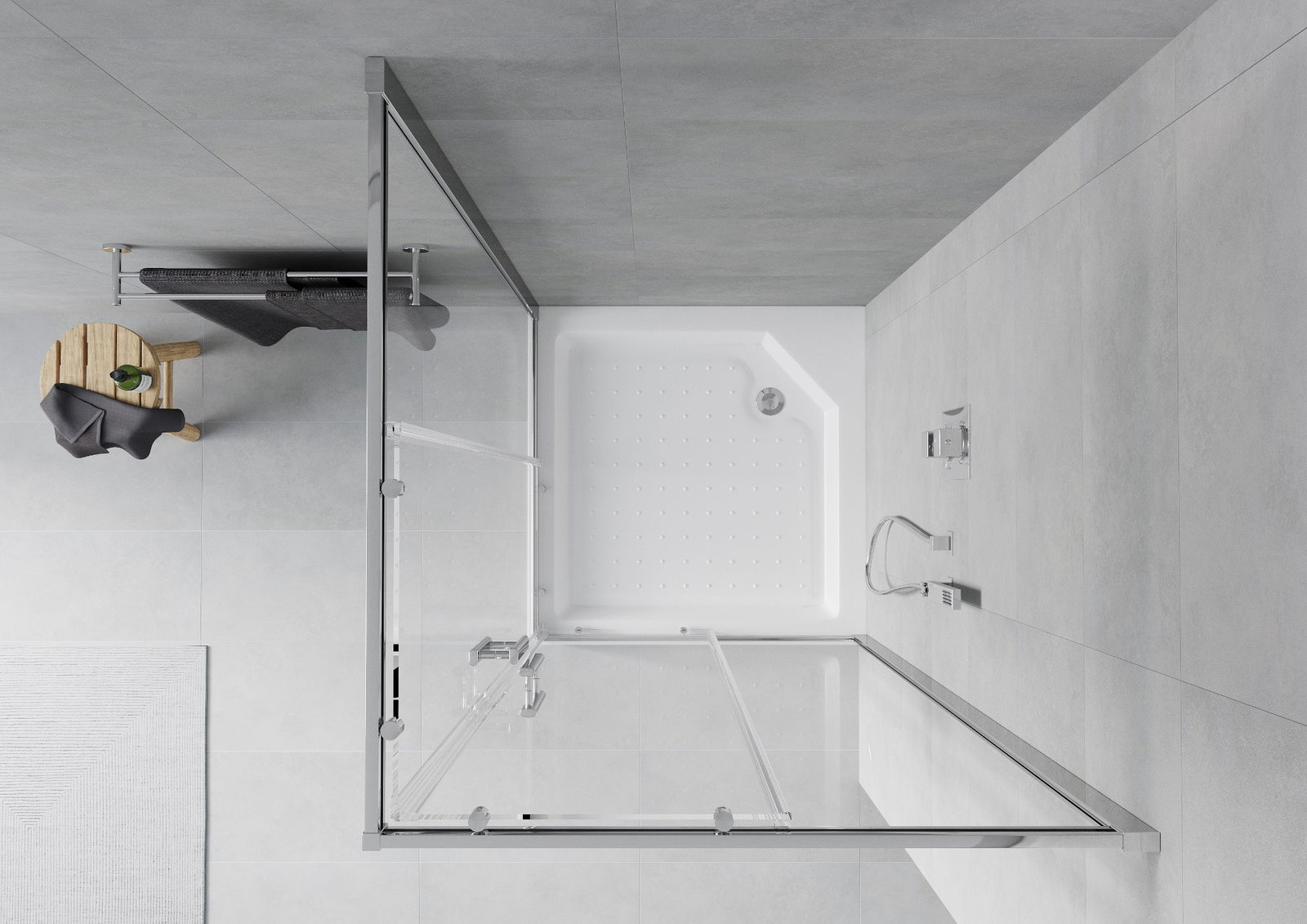 Schuifdeuren bewegen zich over speciale rails en hebben geen extra ruimte nodig om geopend te worden, daarom zijn ze ideaal voor kleinere badkamers. Dankzij de dubbele rollen van duurzaam kunststof is hun beweging soepel.