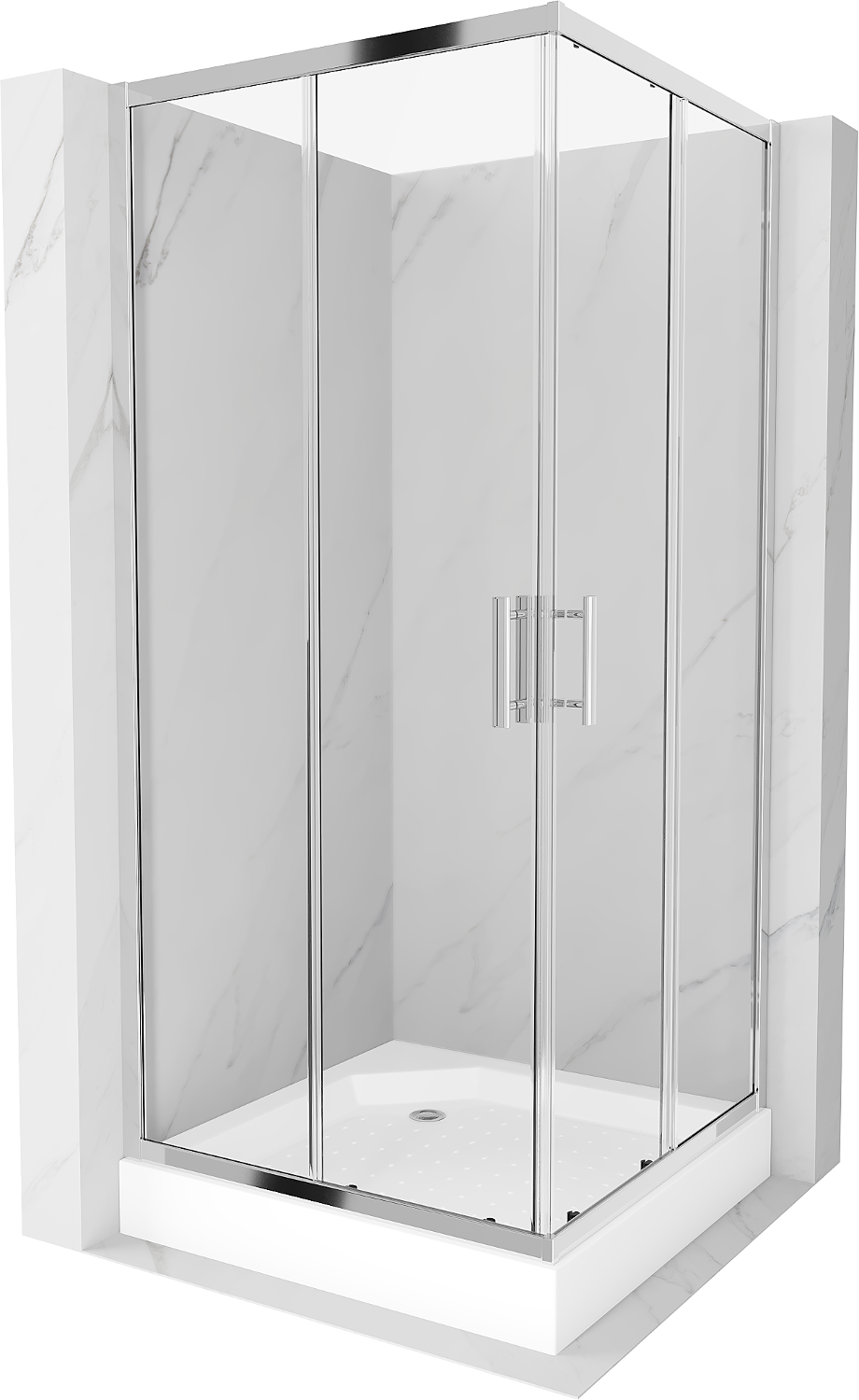 Mexen Rio vierkante douchecabine 90 x 90 cm, transparant, chroom + Rio douchebak, wit - 860-090-090-01-00-4510