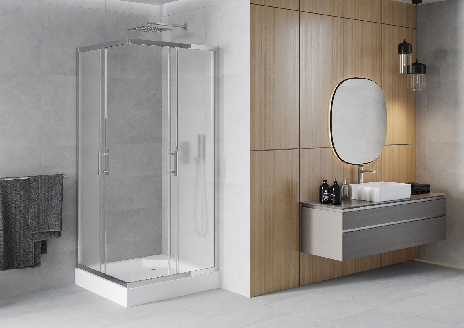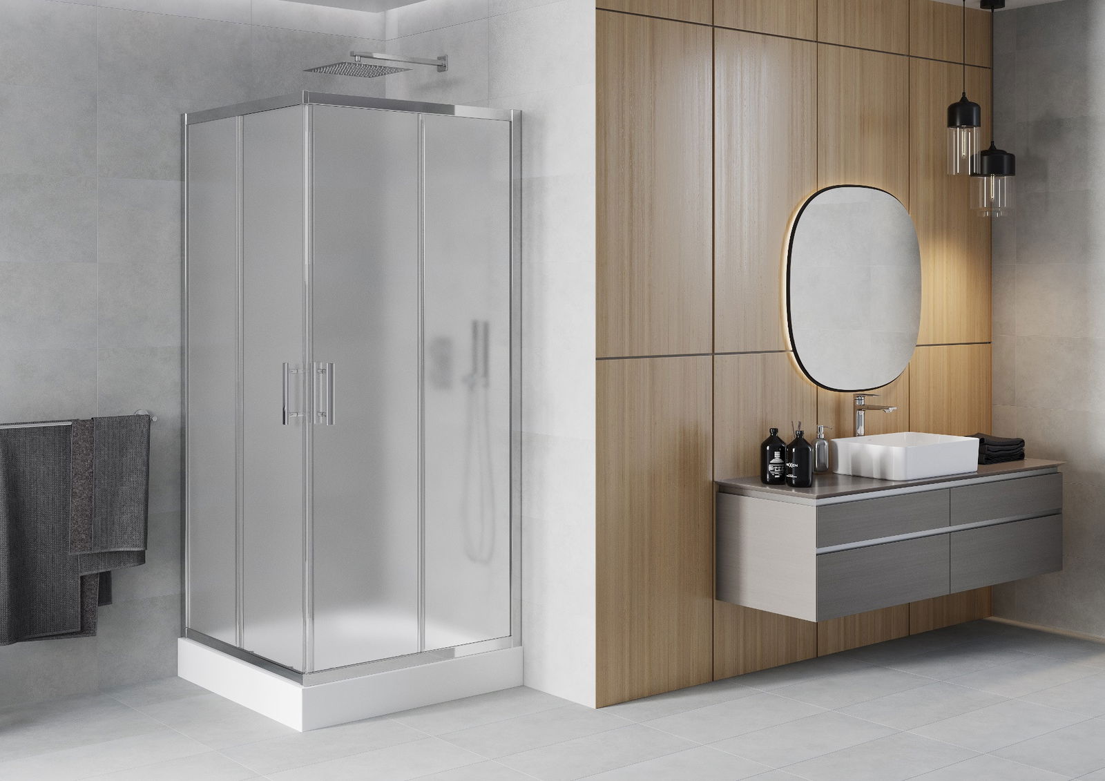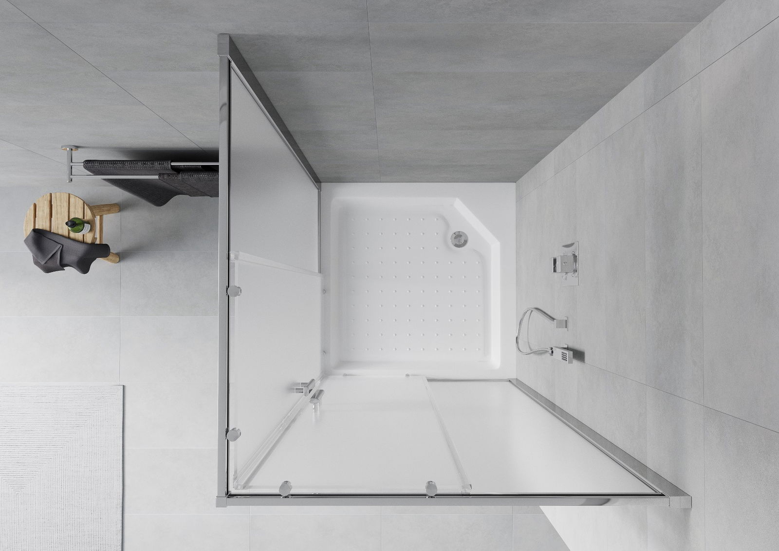 Schuifdeuren bewegen zich over speciale rails en hebben geen extra ruimte nodig om geopend te worden, daarom zijn ze ideaal voor kleinere badkamers. Dankzij de dubbele rollen van duurzaam kunststof is hun beweging soepel.