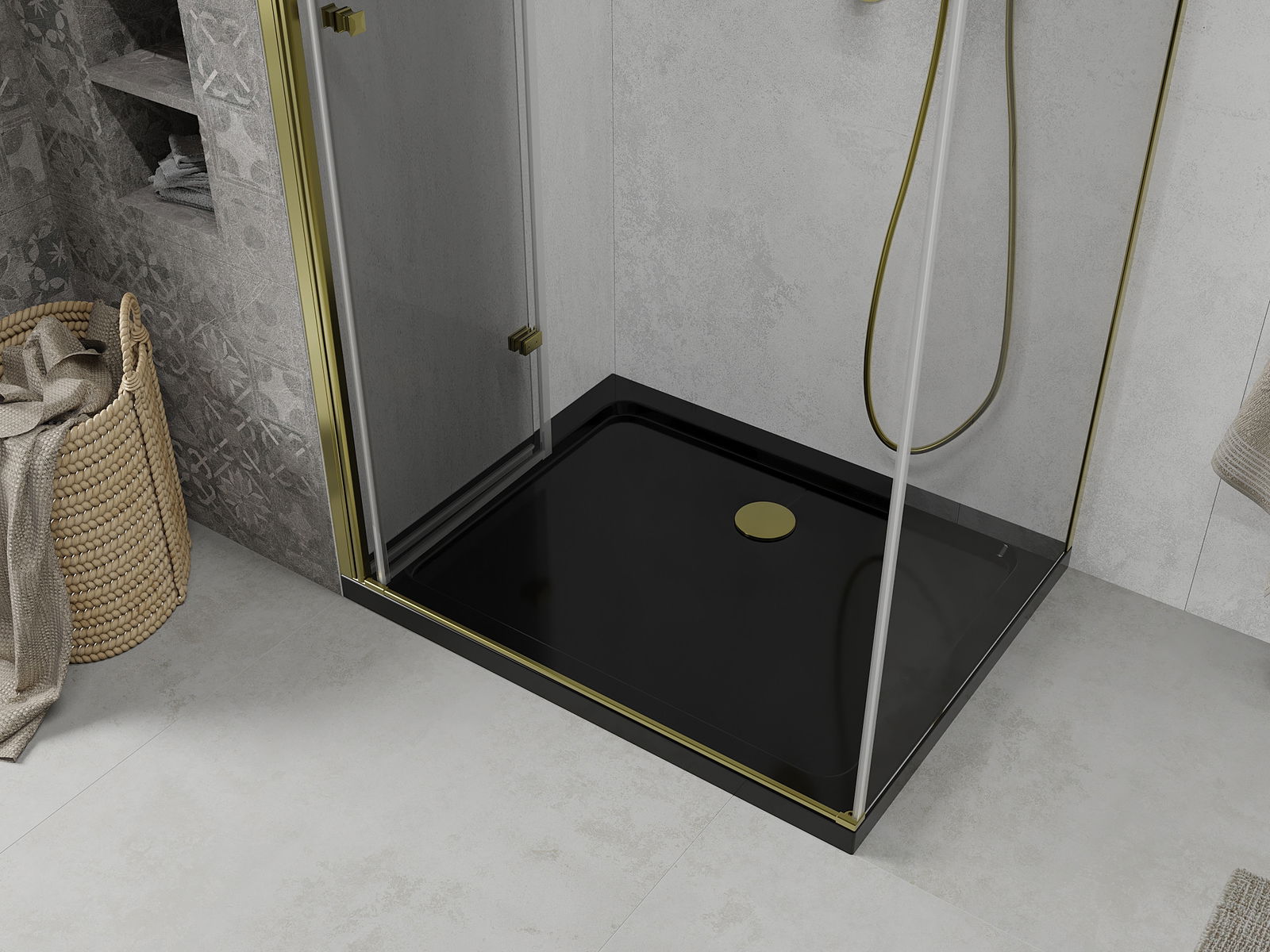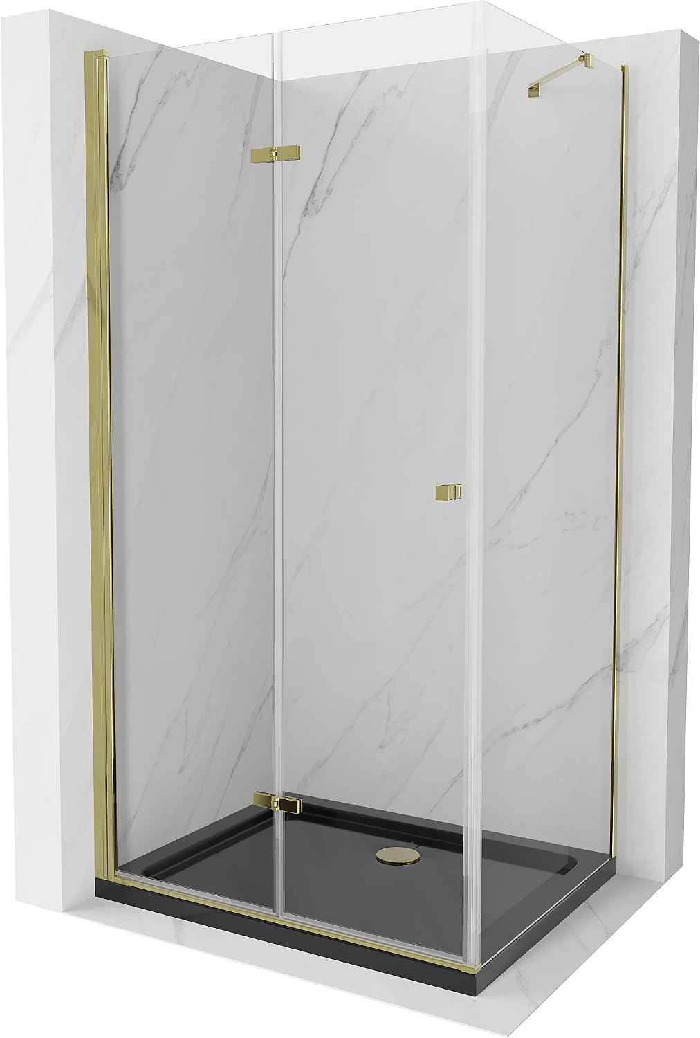 Mexen Lima inklapbare douchecabine 90 x 100 cm, transparant, goud + Flat douchebak, zwart - 856-090-100-50-00-4070G