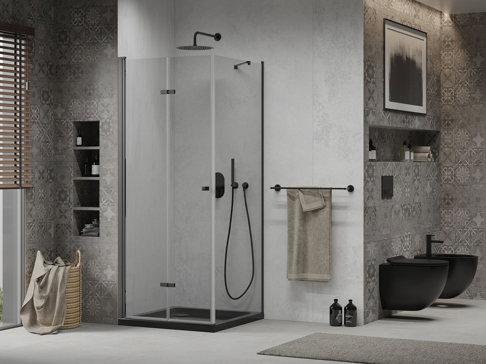 Mexen Rio vierkante douchecabine 90 x 90 cm, transparant, zwart - 860-090-090-70-00