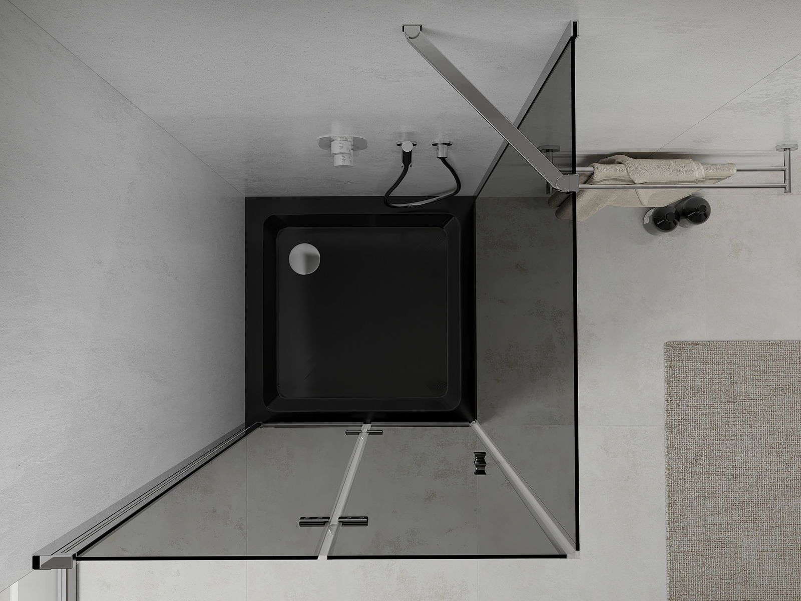 Handige en comfortabele greep is gemaakt van duurzaam en weerbestendig metaal. De modieuze vorm in combinatie met een afwerking die past bij de kleur van de profielen geeft het geheel een moderne en stijlvolle uitstraling, wat de esthetiek van elke badkamer benadrukt.