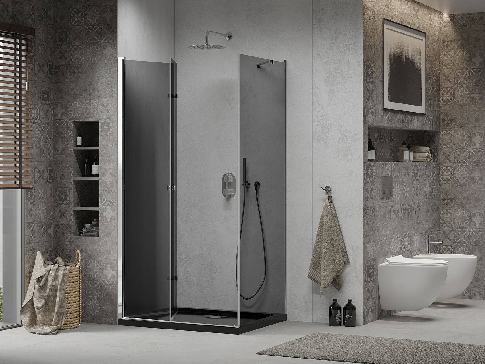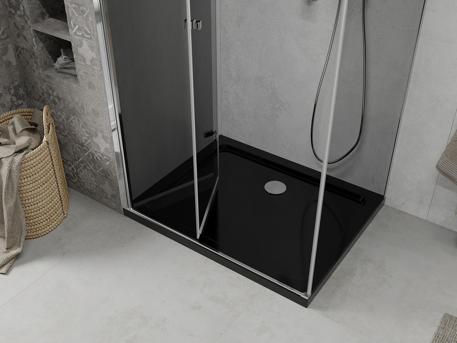 Mexen Lima opvouwbare douchecabine 90 x 120 cm, grafiet, chroom + Flat douchebak, zwart - 856-090-120-01-40-4070