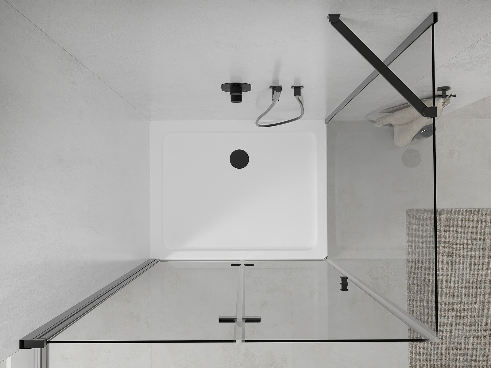 Handige en comfortabele greep is gemaakt van duurzaam en weerbestendig metaal. De modieuze vorm in combinatie met een afwerking die past bij de kleur van de profielen geeft het geheel een moderne en stijlvolle uitstraling, wat de esthetiek van elke badkamer benadrukt.