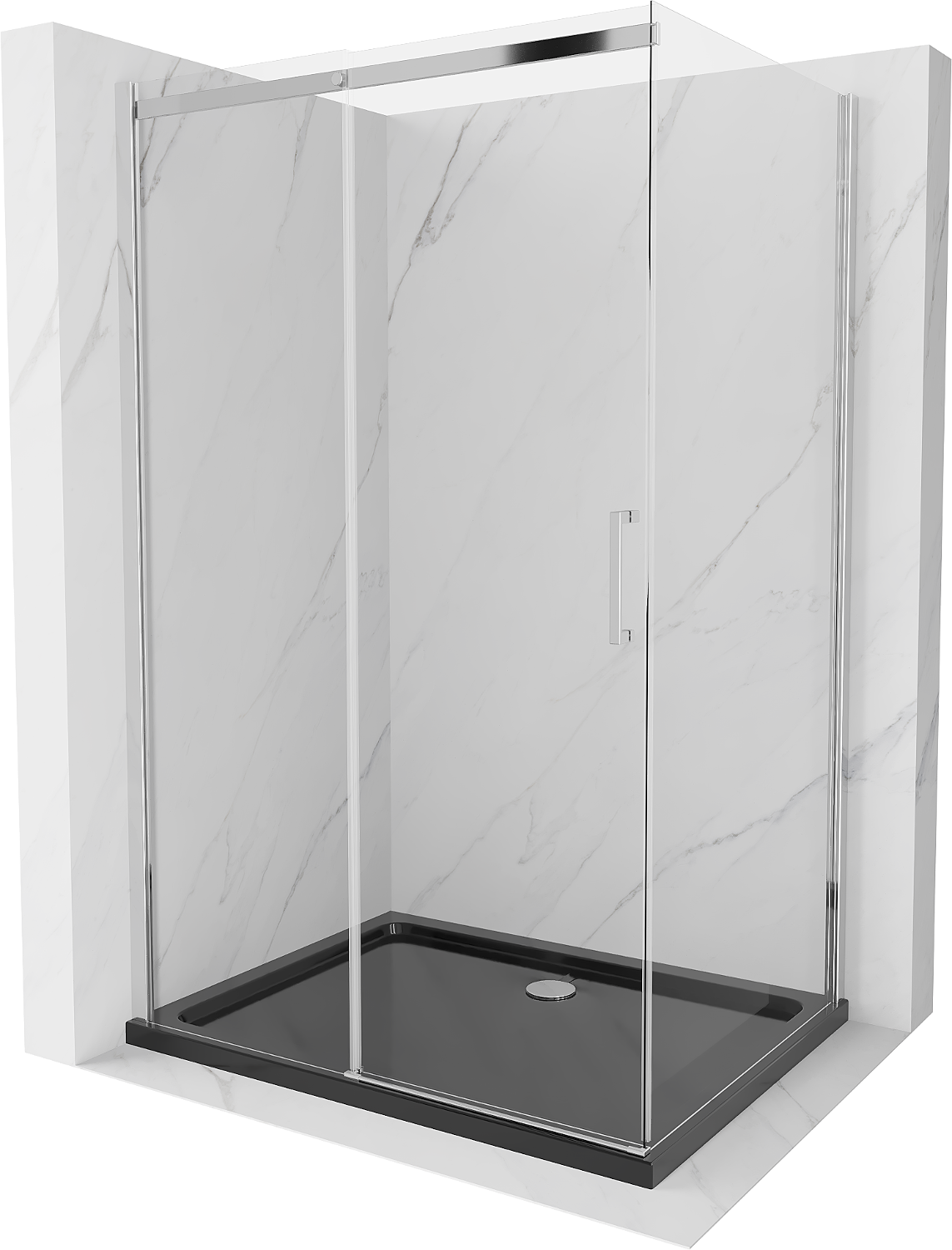 Mexen Omega douchecabine schuifdeur 100 x 90 cm, transparant, chroom + douchebak Flat, zwart - 825-100-090-01-00-4070