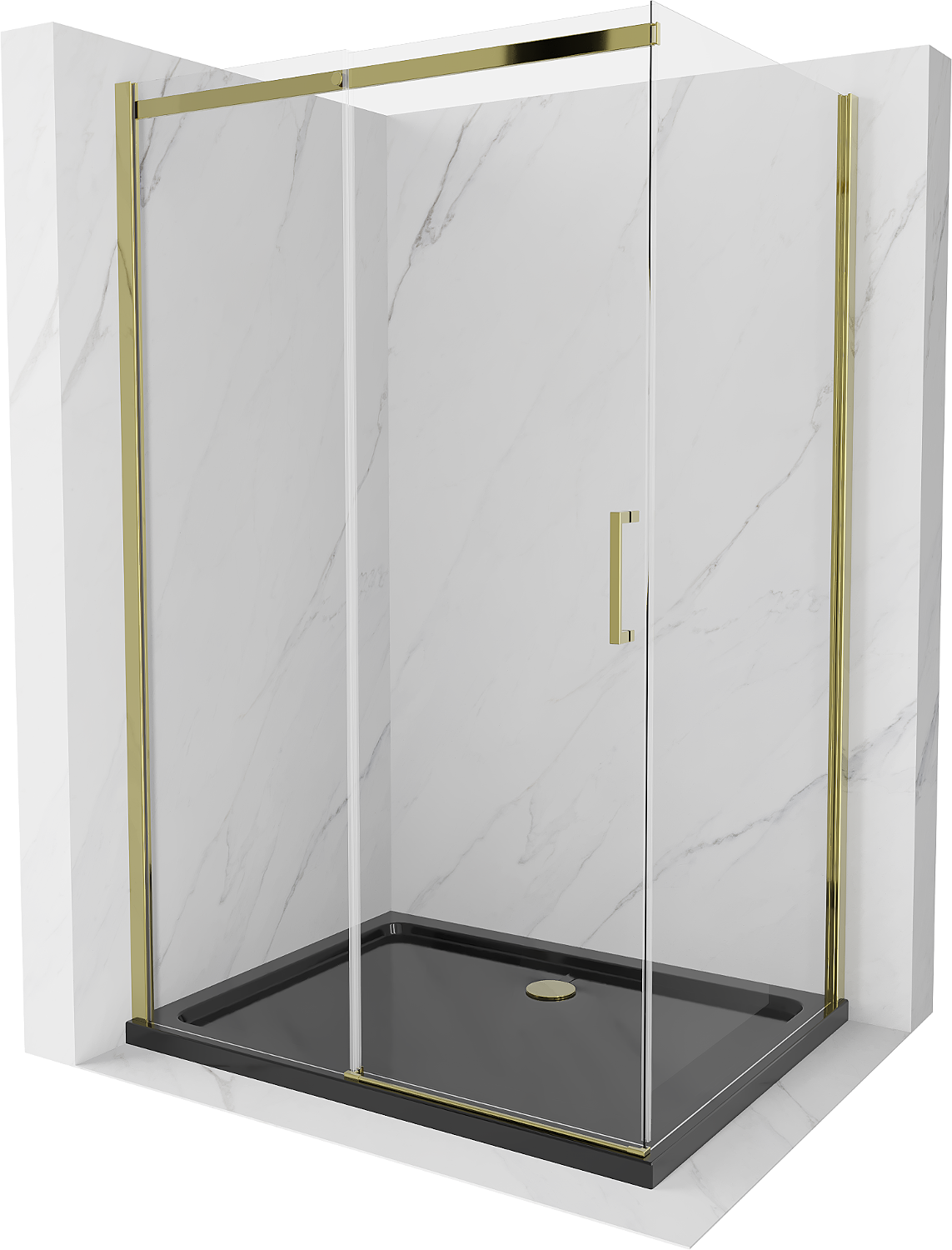 Mexen Omega schuif douchecabine 120 x 80 cm, transparant, goud + Flat douchebak, zwart - 825-120-080-50-00-4070G