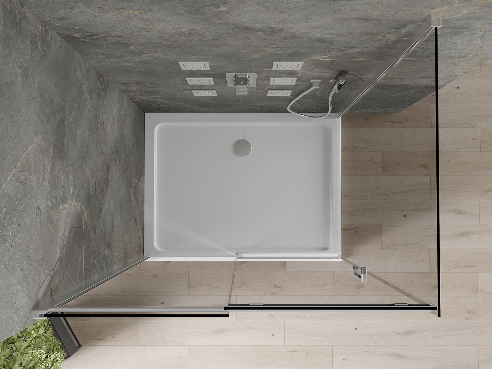 De douchebak is zo ontworpen dat het water vrij kan weglopen in de richting van de afvoer. Het zorgt voor een snelle en efficiënte afvoer van water van het oppervlak van de douchebak, waardoor het ontstaan van plassen en het overstromen van de badkamer wordt voorkomen.