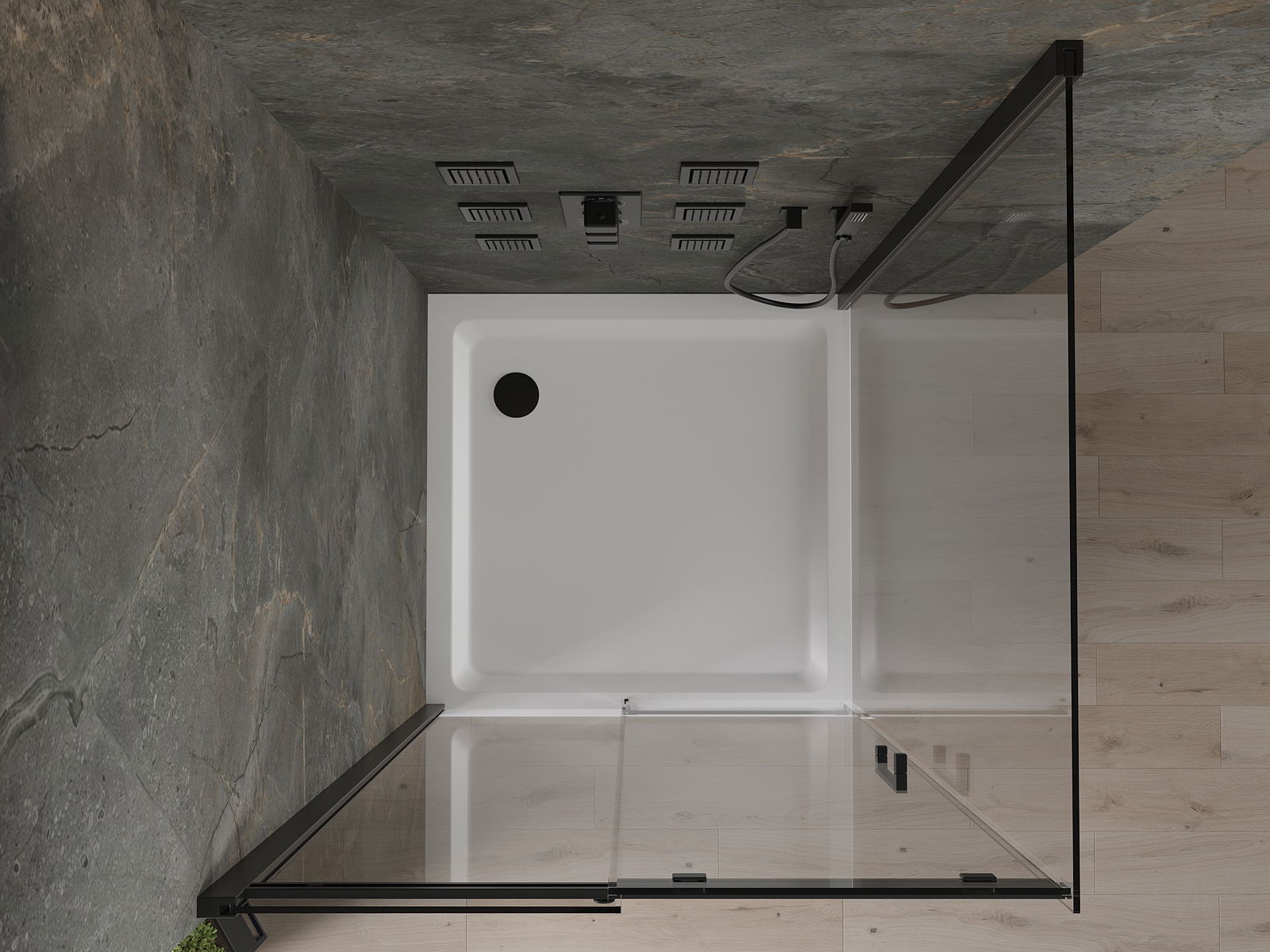 Schuifdeuren bewegen op speciale geleiders en hebben geen extra ruimte nodig om te openen, waardoor ze ideaal zijn voor kleinere badkamers. Dubbele rollen met een metalen frame zorgen voor een soepele beweging.