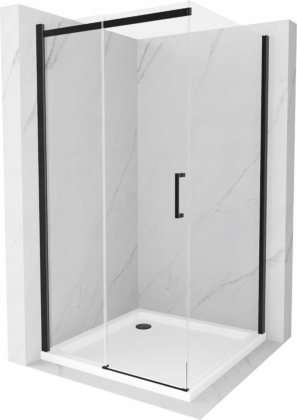 Mexen Omega schuifdouchecabine 100 x 100 cm, transparant, zwart + Flat douchebak, wit - 825-100-100-70-00-4010B