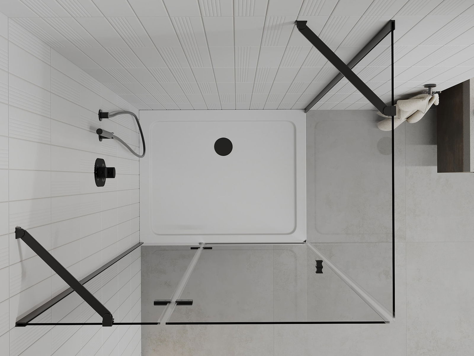 Mexen Roma douchecabine draaibaar 80 x 120 cm, transparant, zwart + Flat douchebak, zwart - 854-080-120-70-00-4070B