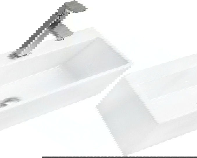 De wastafel heeft een gat waarin we een kraan kunnen installeren. Dit bespaart kostbare ruimte in de badkamer en benadrukt de esthetiek ervan. Deze oplossing maakt het ook gemakkelijker om de omgeving rond de wastafel schoon te houden.