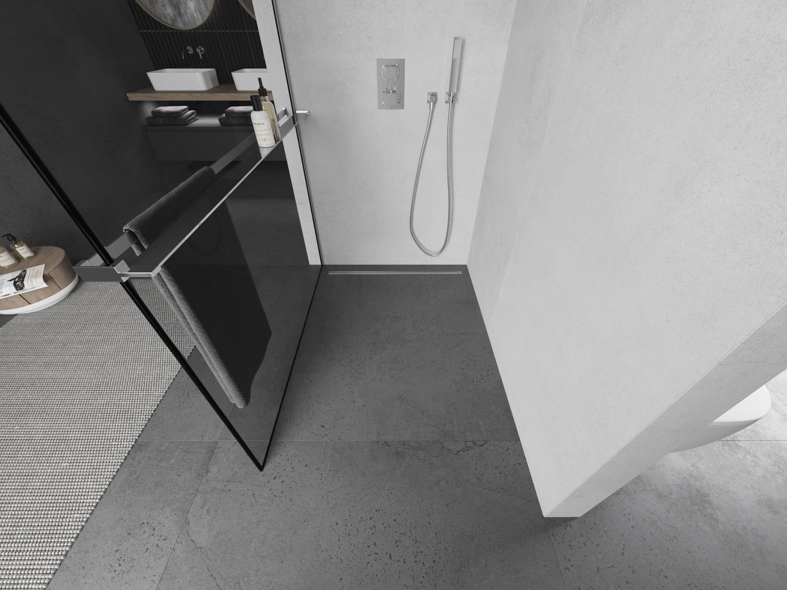 Het product kan naar behoefte zowel op de douchebak als direct op de vloer worden gemonteerd. De universele montagewijze maakt het mogelijk het product aan te passen aan verschillende soorten badkamers en ruimtelijke configuraties.