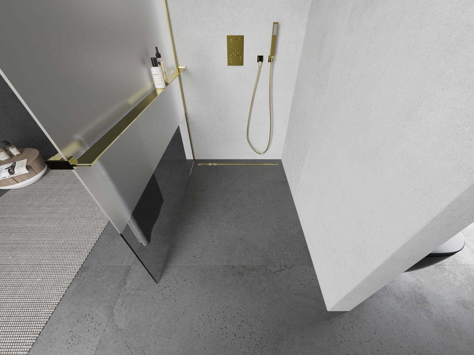 Mexen Kioto+ douchewand met plank Walk-in 80 x 200 cm, transparant/frost, goud - 800-080-121-50-35