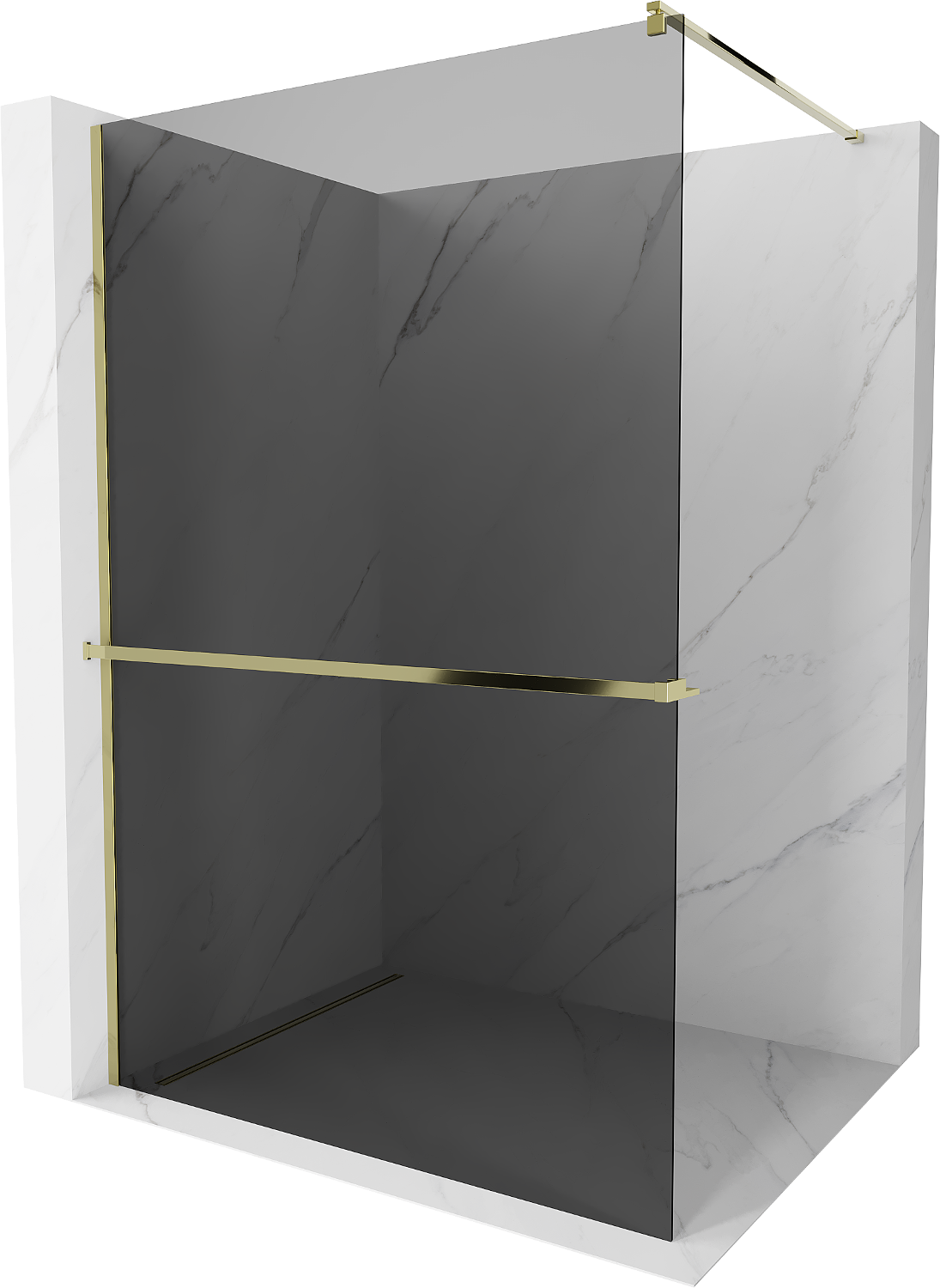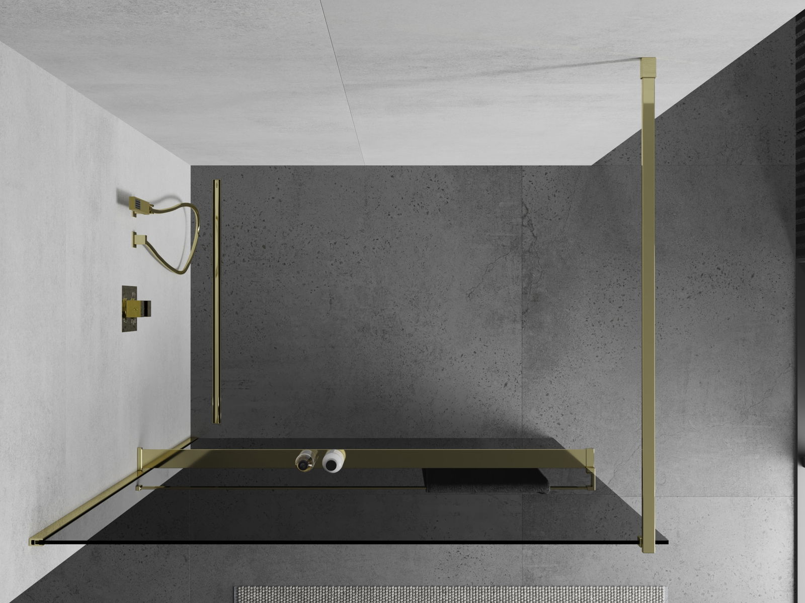 Mexen Kioto+ douchewand met plank Walk-in 110 x 200 cm, grafiet, goud - 800-110-121-50-40