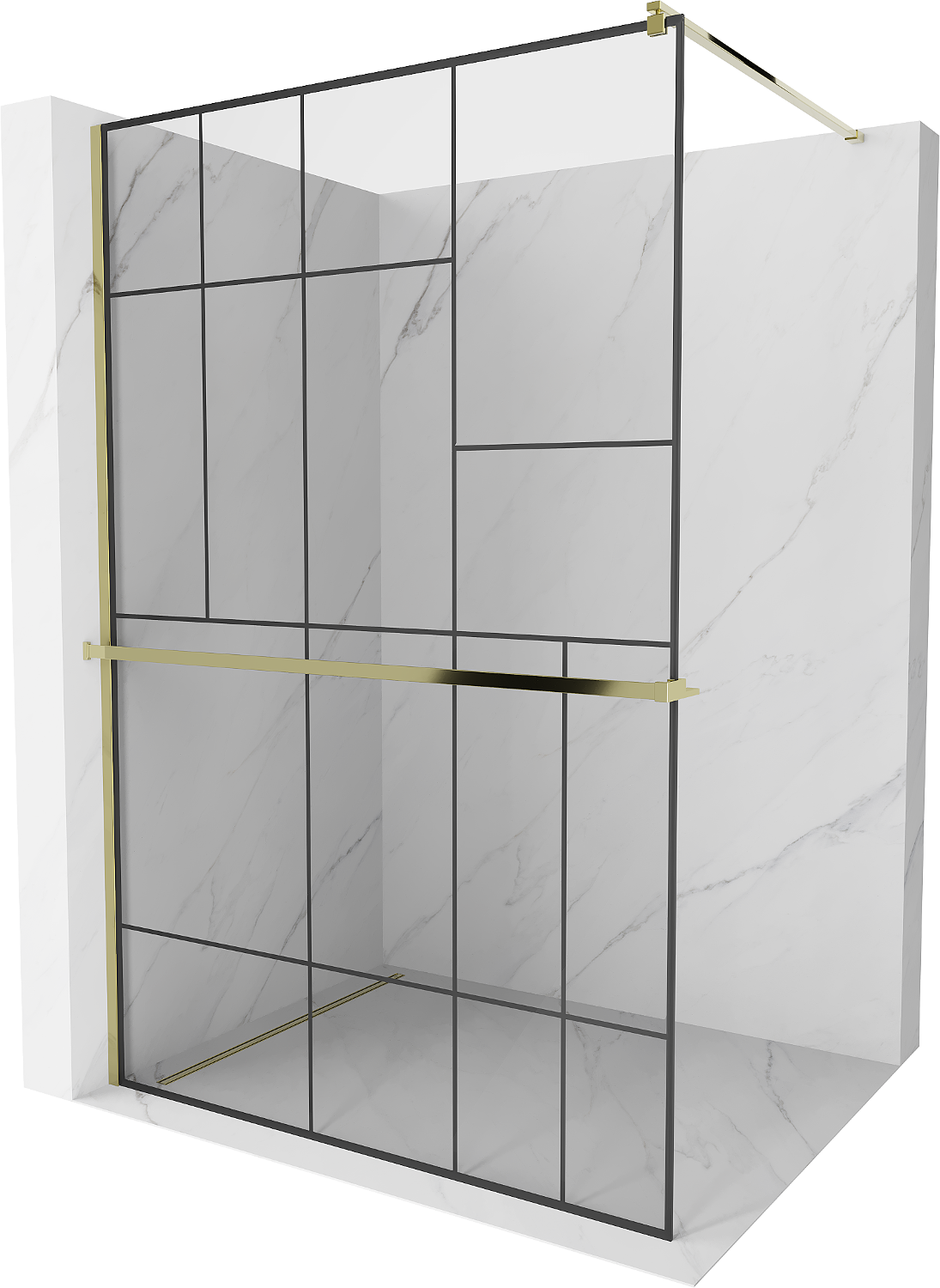 Mexen Kioto+ douchewand met plank Walk-in 70 x 200 cm, zwart patroon, goud - 800-070-121-50-78