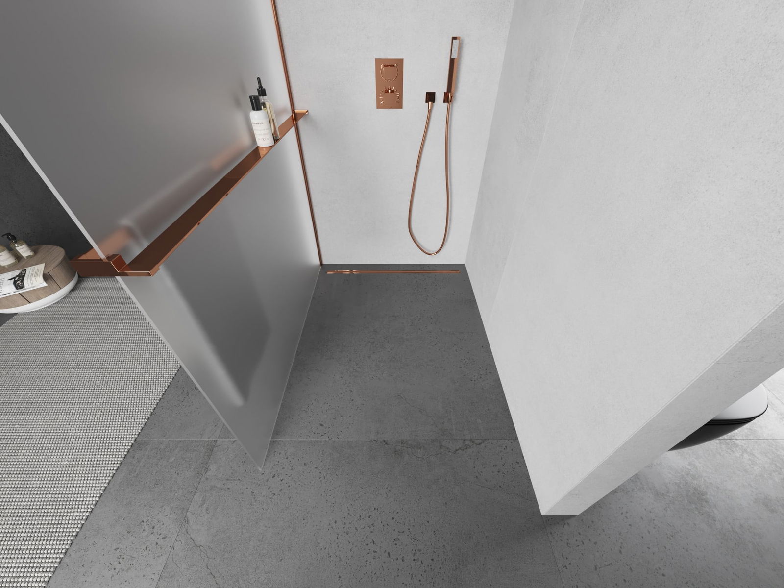 Mexen Kioto+ douchewand met plank Walk-in 70 x 200 cm, matglas, roségoud - 800-070-121-60-30