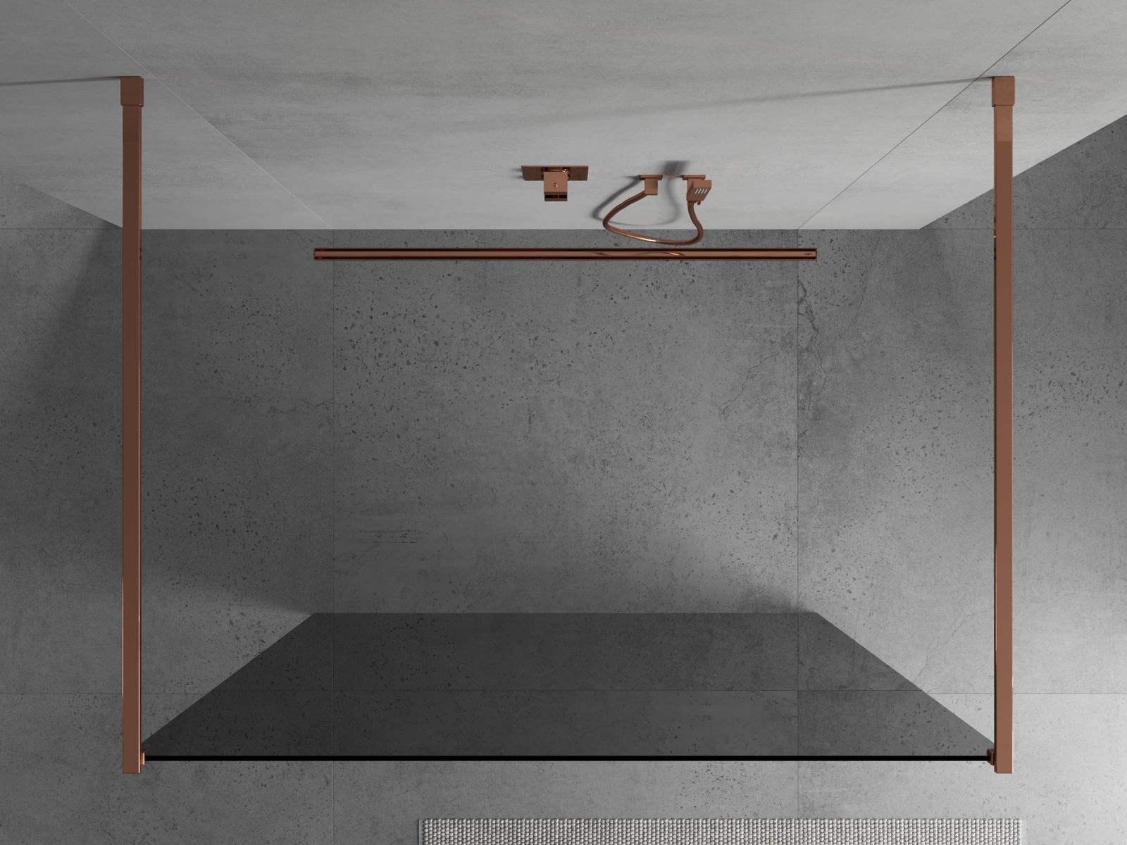 Mexen Kioto vrijstaande douchewand 100 x 200 cm, grafiet 8 mm, roze goud - 800-100-002-60-40
