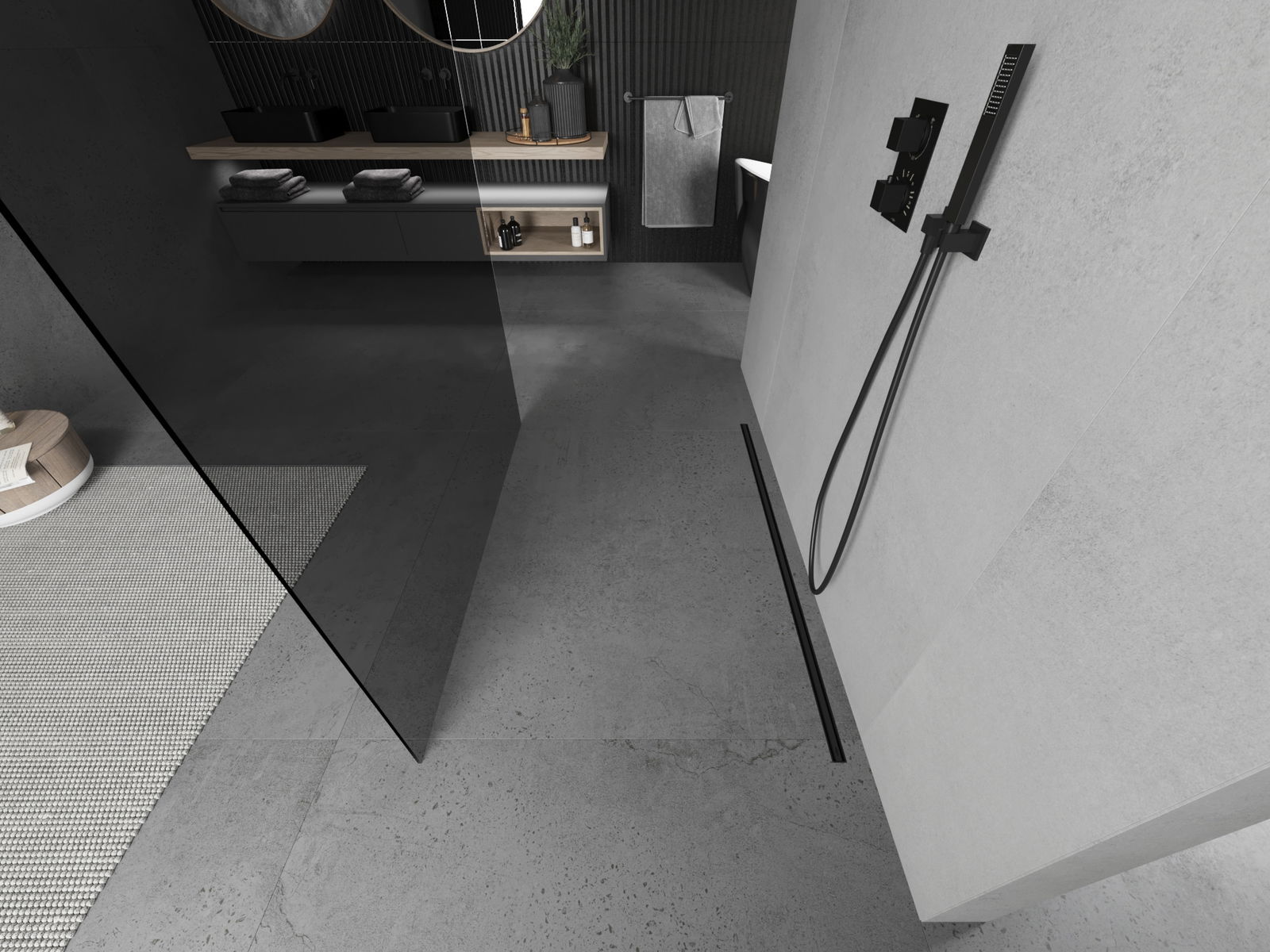 Mexen Kioto vrijstaande douchewand 110 x 200 cm, grafiet 8 mm, zwart - 800-110-002-70-40