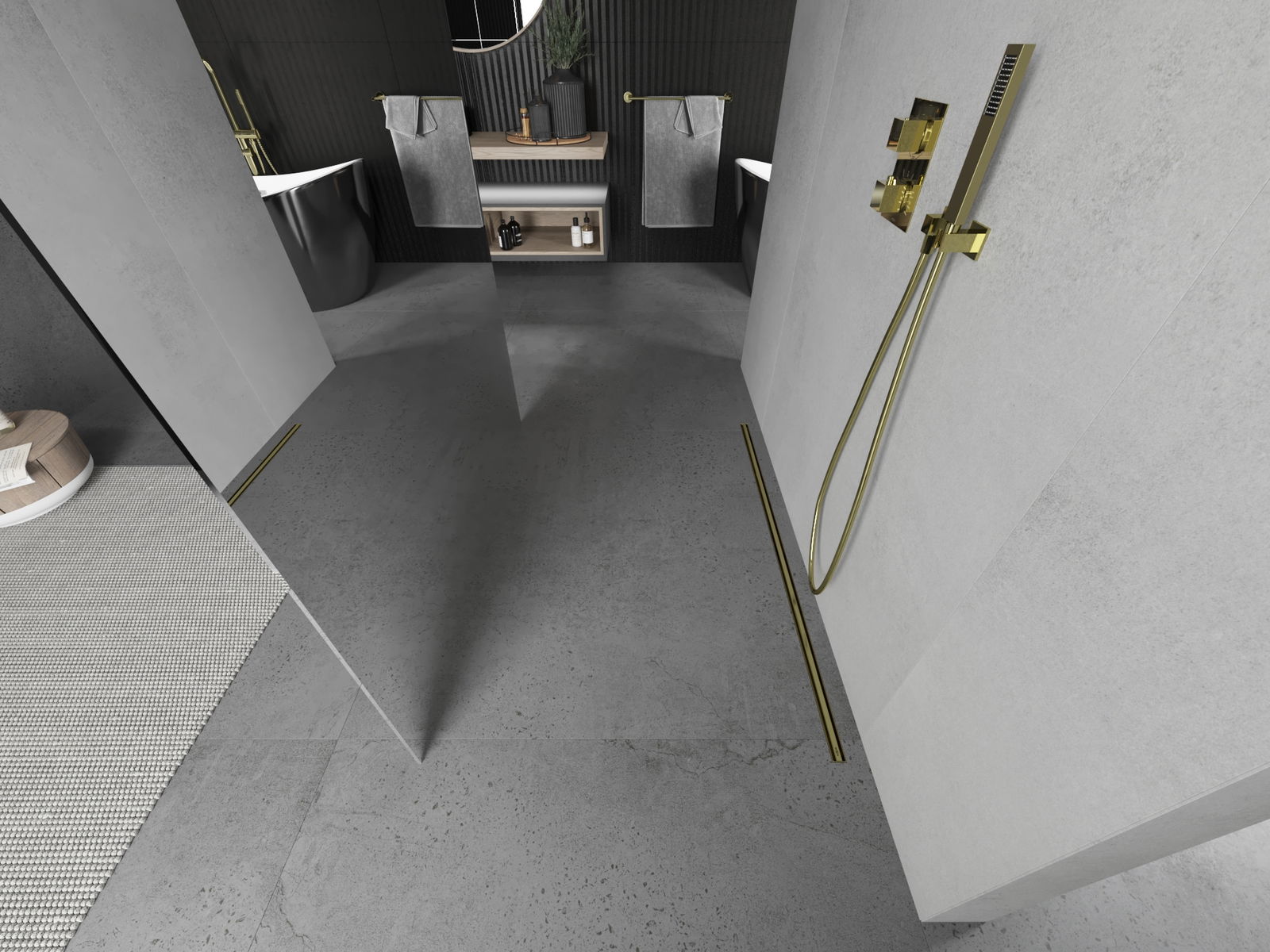 Mexen Kioto vrijstaande douchewand 110 x 200 cm, spiegel 8 mm, goud - 800-110-002-50-50