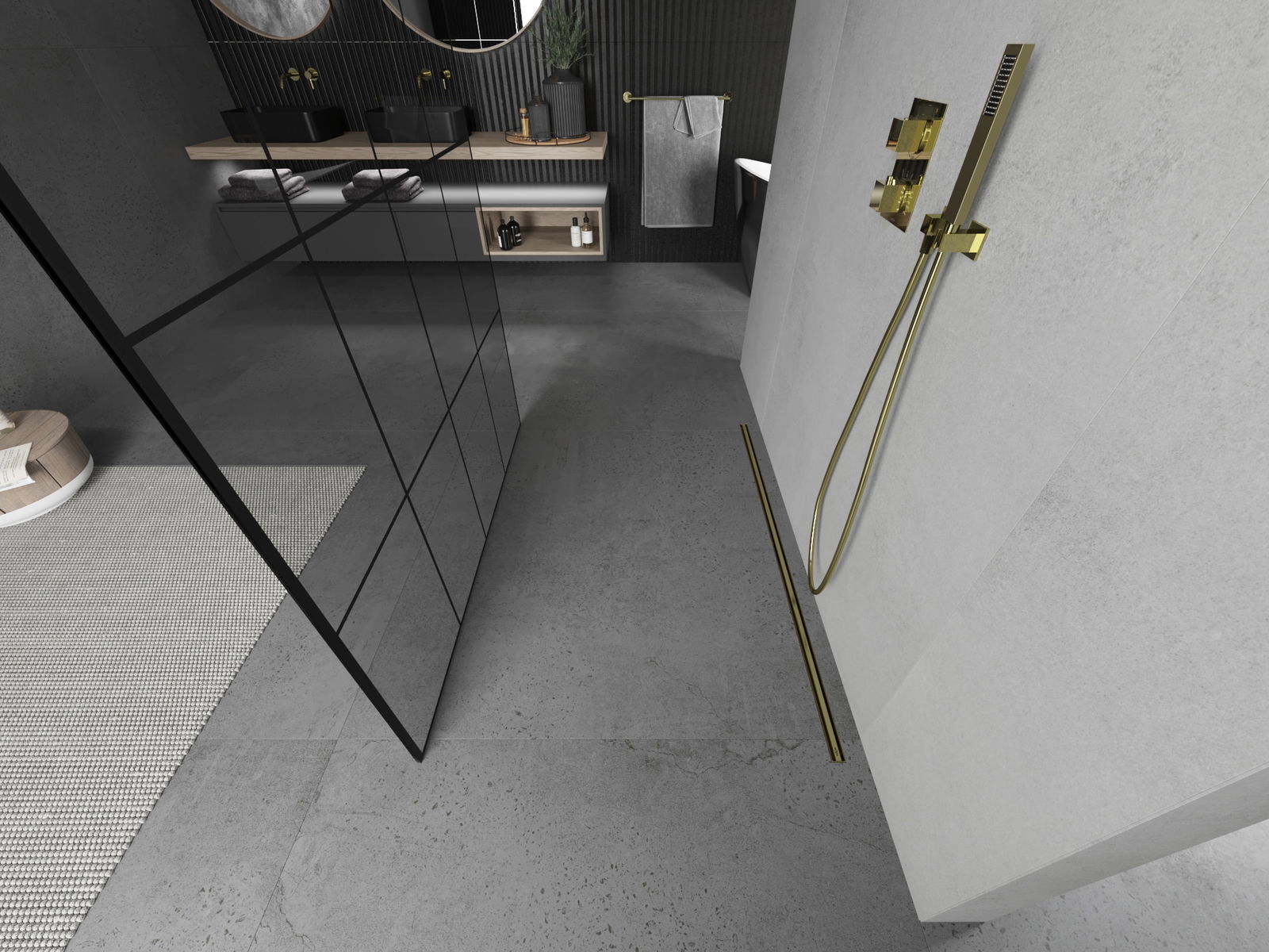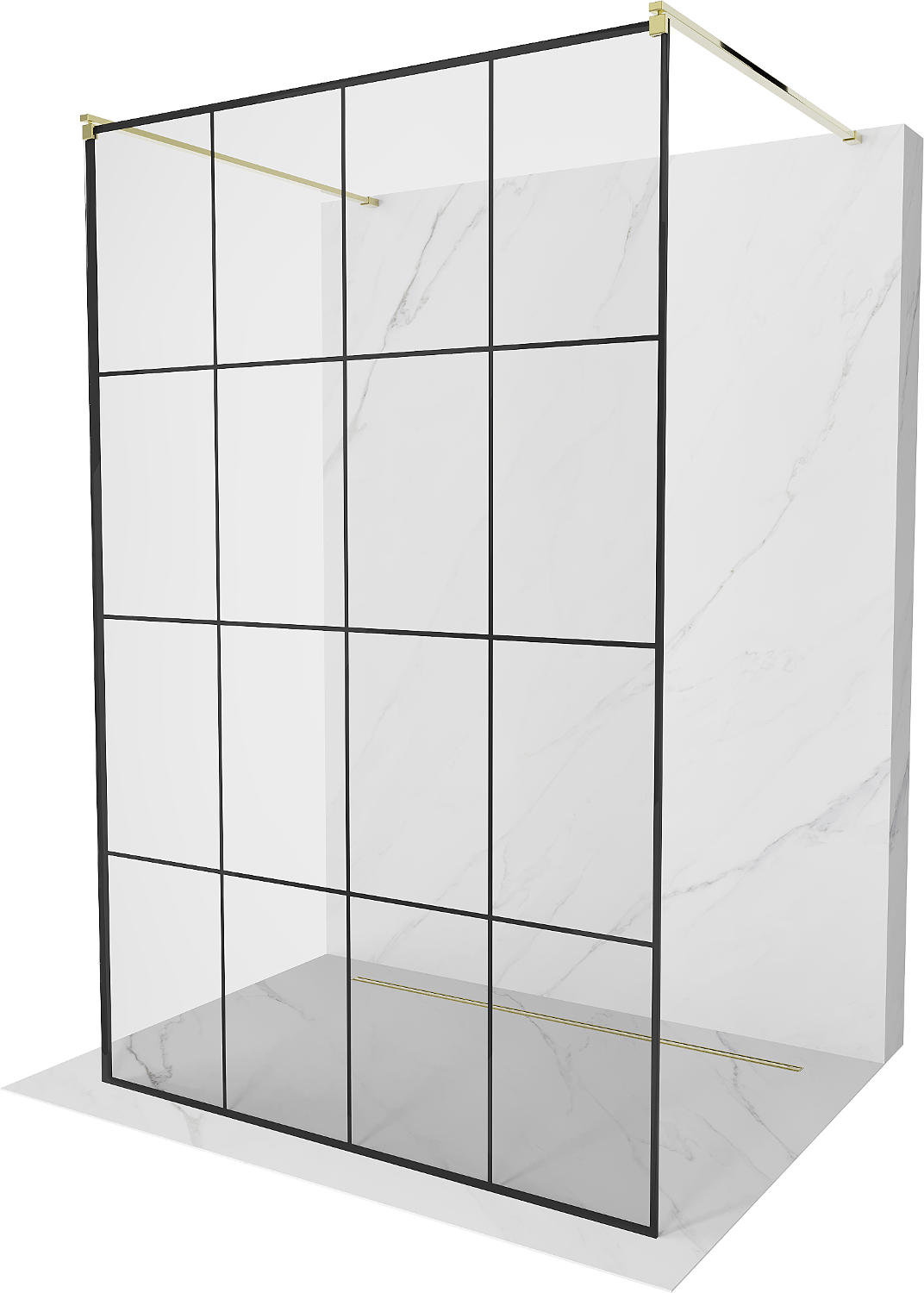 Mexen Kioto vrijstaande douchewand 140 x 200 cm, zwart raster 8 mm, goud - 800-140-002-50-77