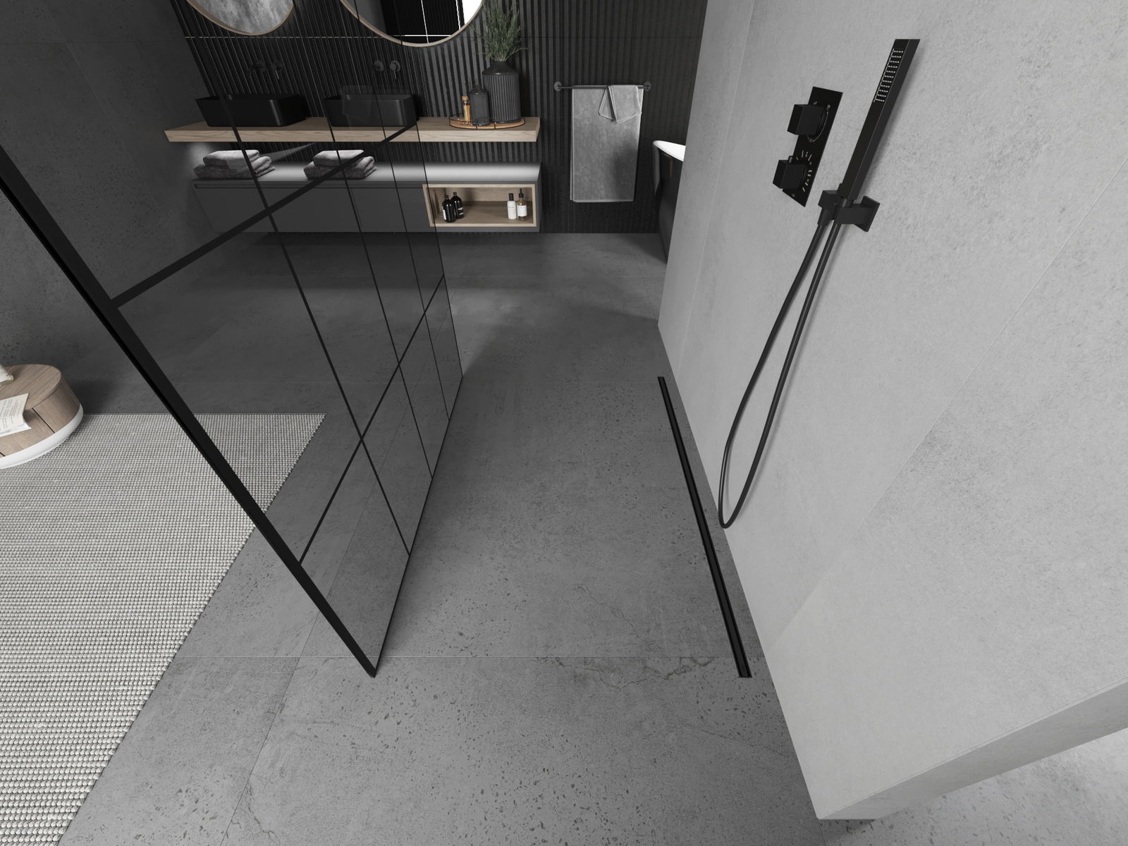Mexen Kioto vrijstaande douchewand 140 x 200 cm, zwart raster 8 mm, zwart - 800-140-002-70-77