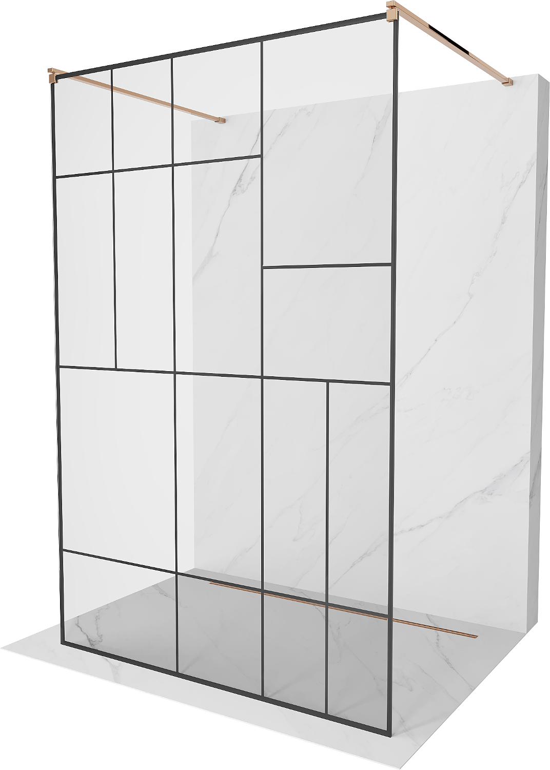 Mexen Kioto vrijstaande douchewand 140 x 200 cm, zwart patroon 8 mm, roze goud - 800-140-002-60-78