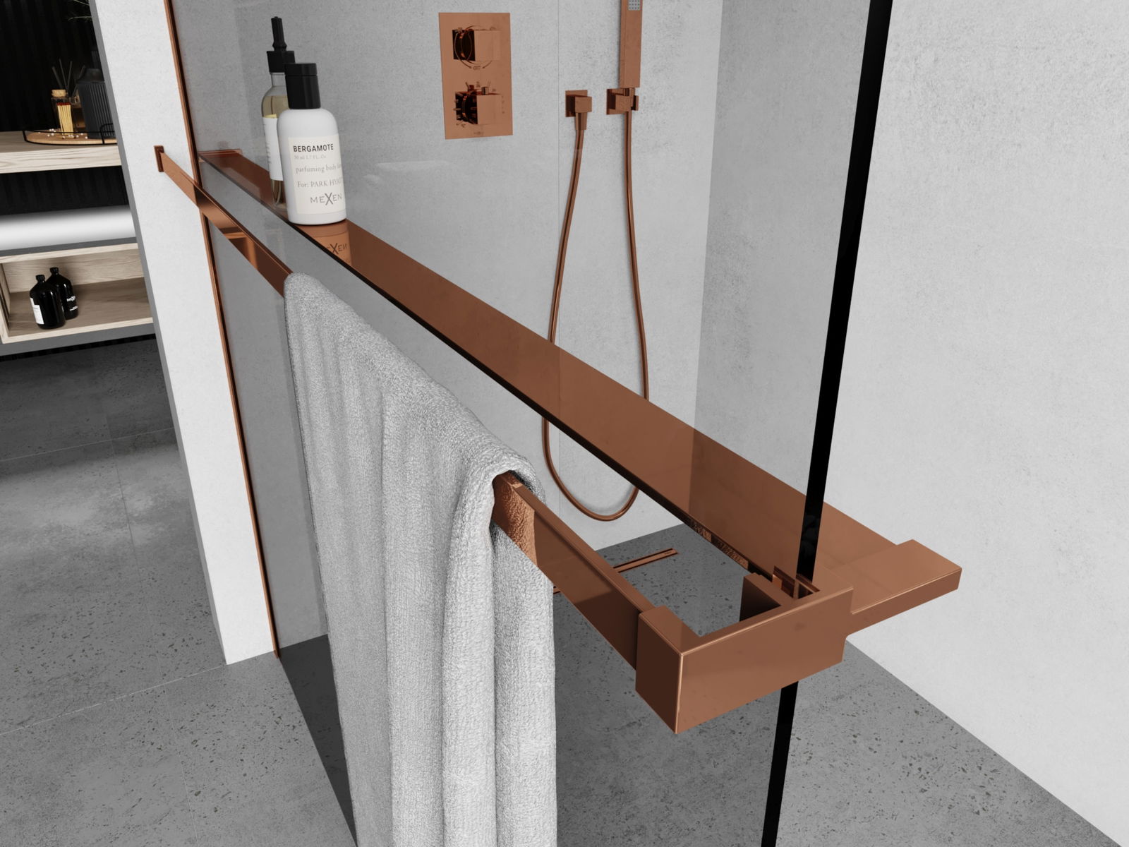 Mexen plank voor douchewand met handdoekrail, roségoud - 800-02-60