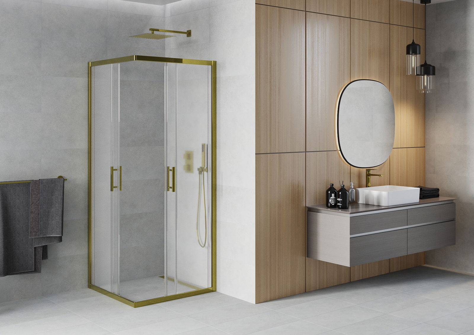 Schuifdeuren bewegen zich over speciale rails en hebben geen extra ruimte nodig om geopend te worden, daarom zijn ze ideaal voor kleinere badkamers. Dankzij de dubbele rollen van duurzaam kunststof is hun beweging soepel.