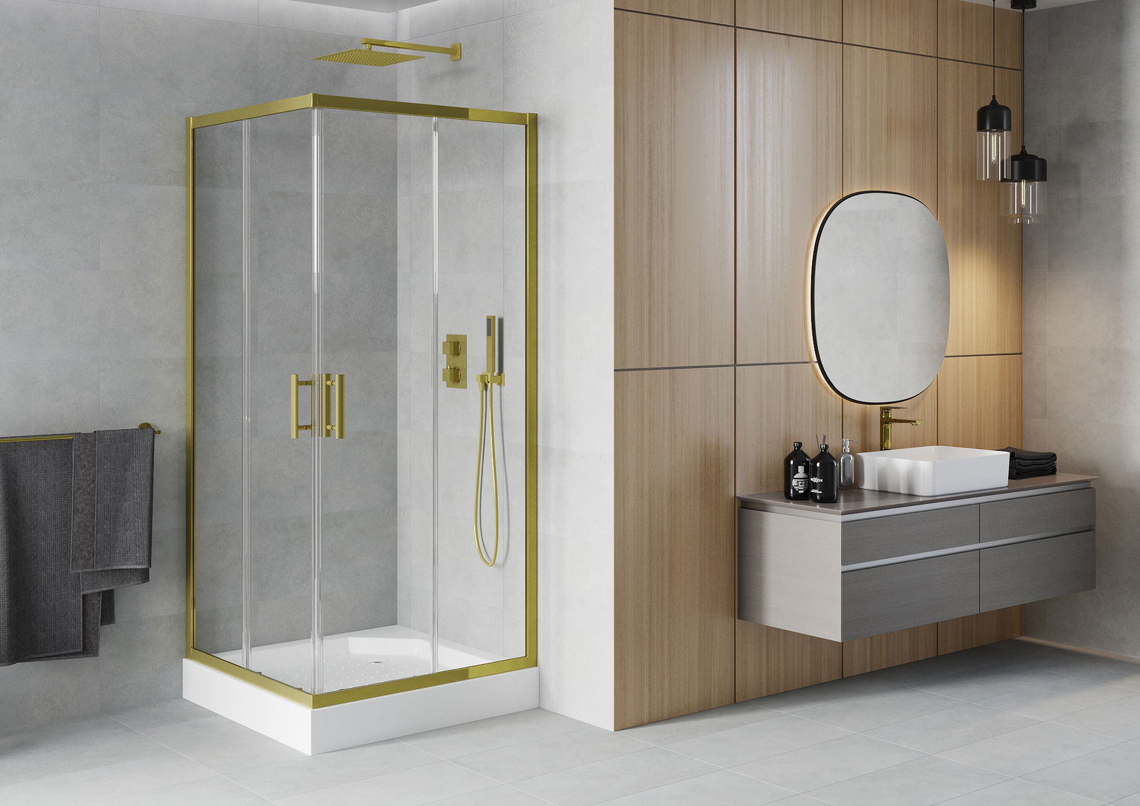 Schuifdeuren bewegen zich over speciale rails en hebben geen extra ruimte nodig om geopend te worden, daarom zijn ze ideaal voor kleinere badkamers. Dankzij de dubbele rollen van duurzaam kunststof is hun beweging soepel.