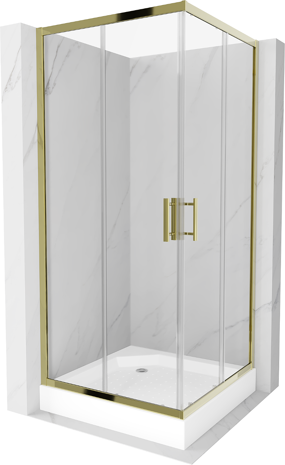Mexen Rio douchecabine vierkant 90 x 90 cm, transparant, goud + Rio douchebak, wit - 860-090-090-50-00-4510