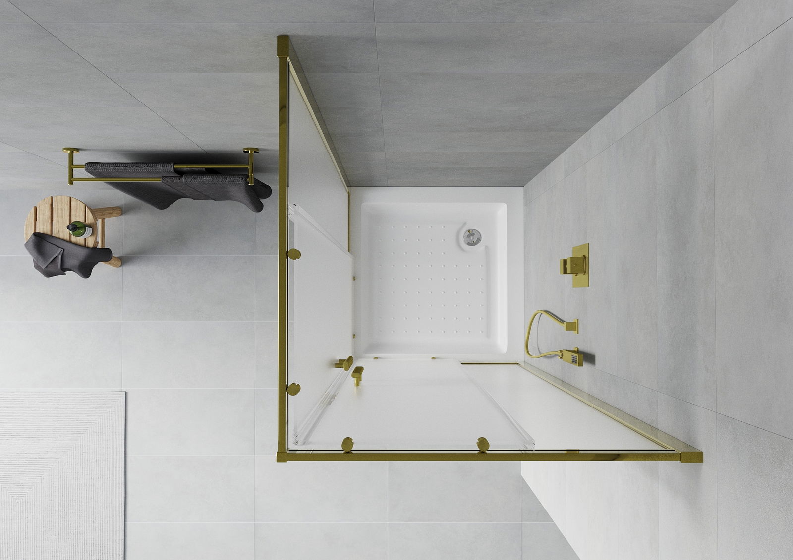 Mexen Rio vierkante douchecabine 70 x 70 cm, matglas, goud + Rio douchebak, wit - 860-070-070-50-30-4510