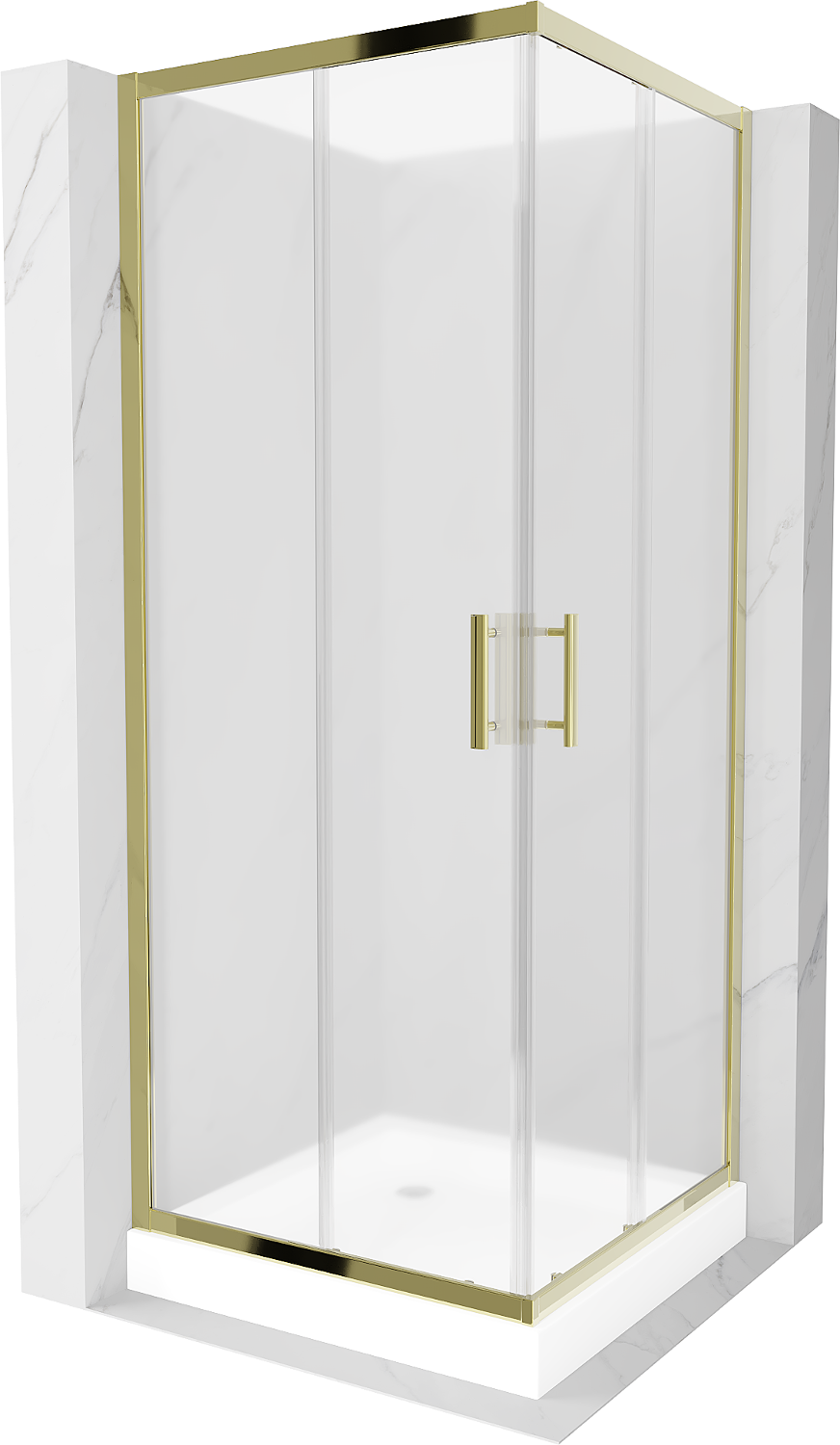 Mexen Rio vierkante douchecabine 80 x 80 cm, matglas, goud + Rio douchebak, wit - 860-080-080-50-30-4510