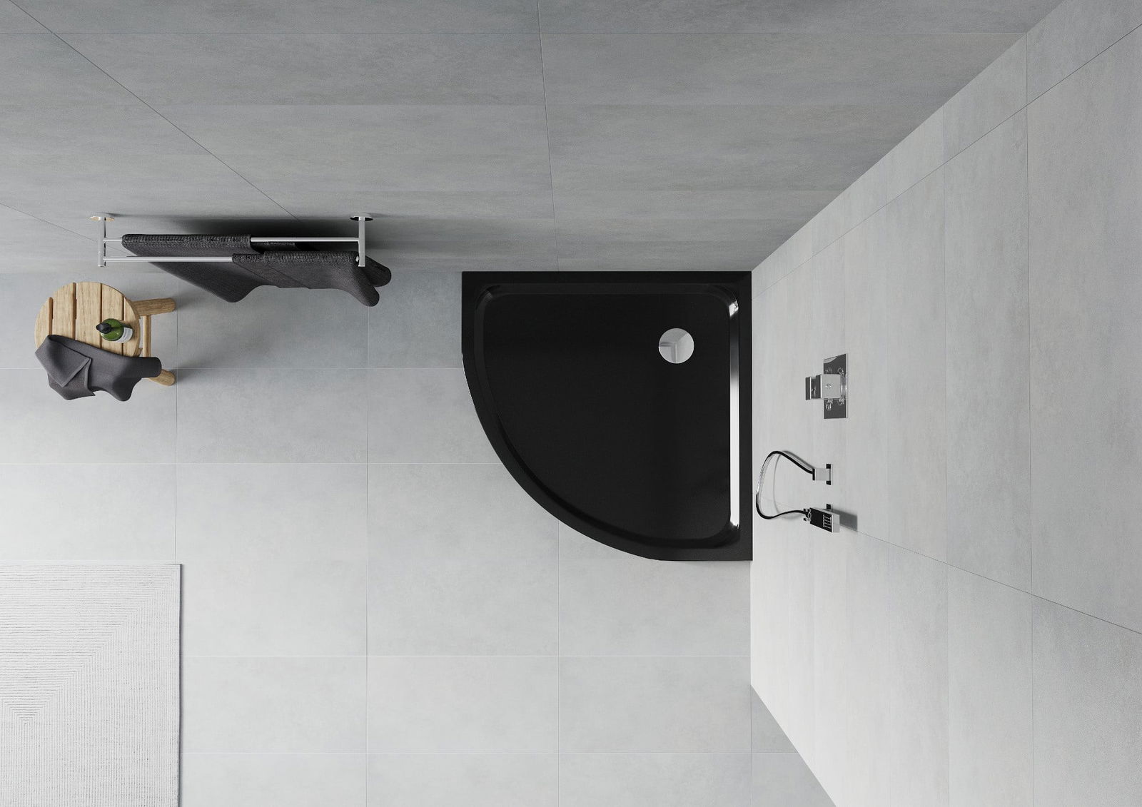 Mexen Flat halfcirkelvormige douchebak slim 100 x 100 cm, zwart, sifon chroom - 41701010
