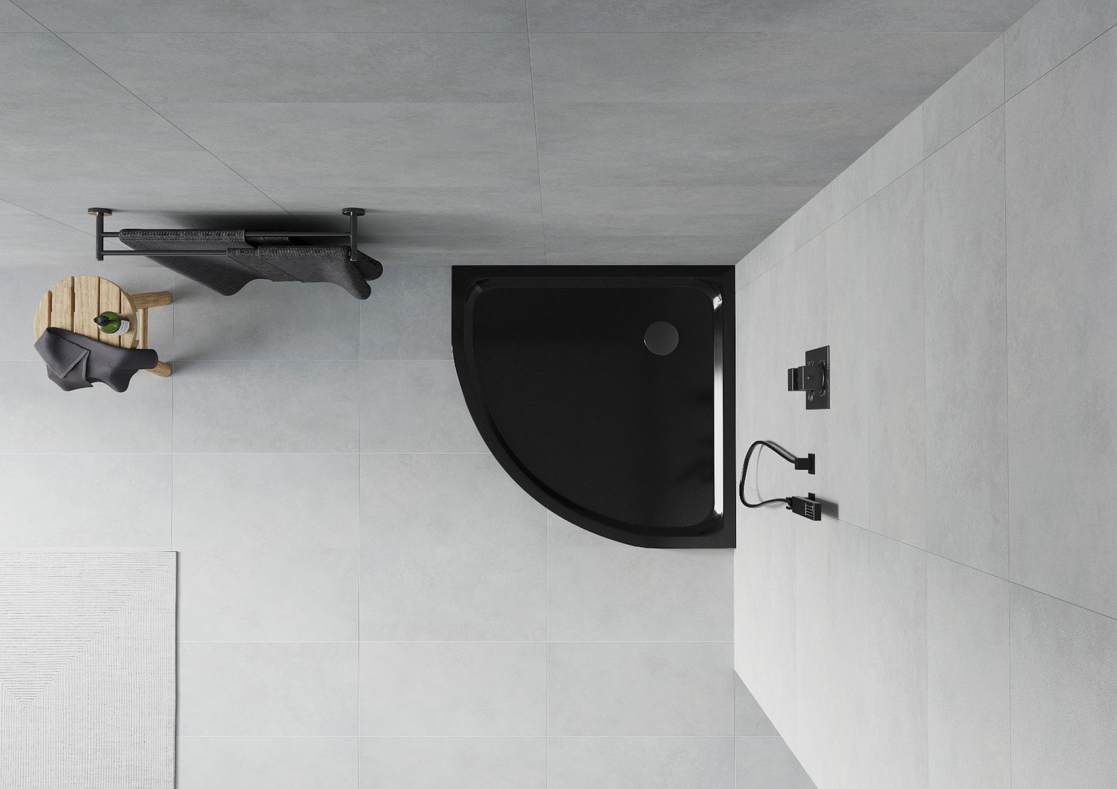 De douchebak is zo ontworpen dat het water vrij kan weglopen in de richting van de afvoer. Het zorgt voor een snelle en efficiënte afvoer van water van het oppervlak van de douchebak, waardoor het ontstaan van plassen en het overstromen van de badkamer wordt voorkomen.