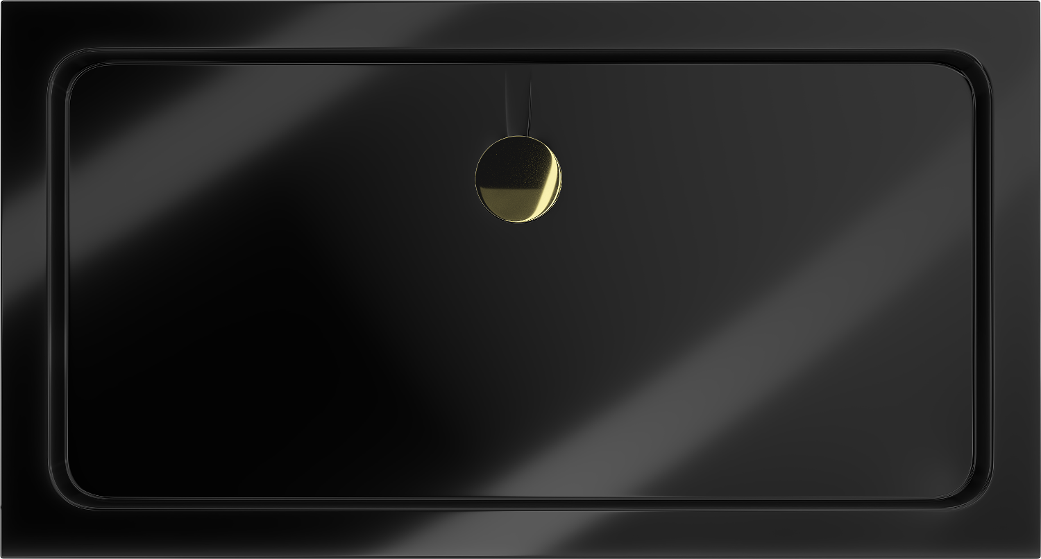Mexen Flat rechthoekige douchebak slim 140 x 70 cm, zwart, gouden sifon - 40707014G
